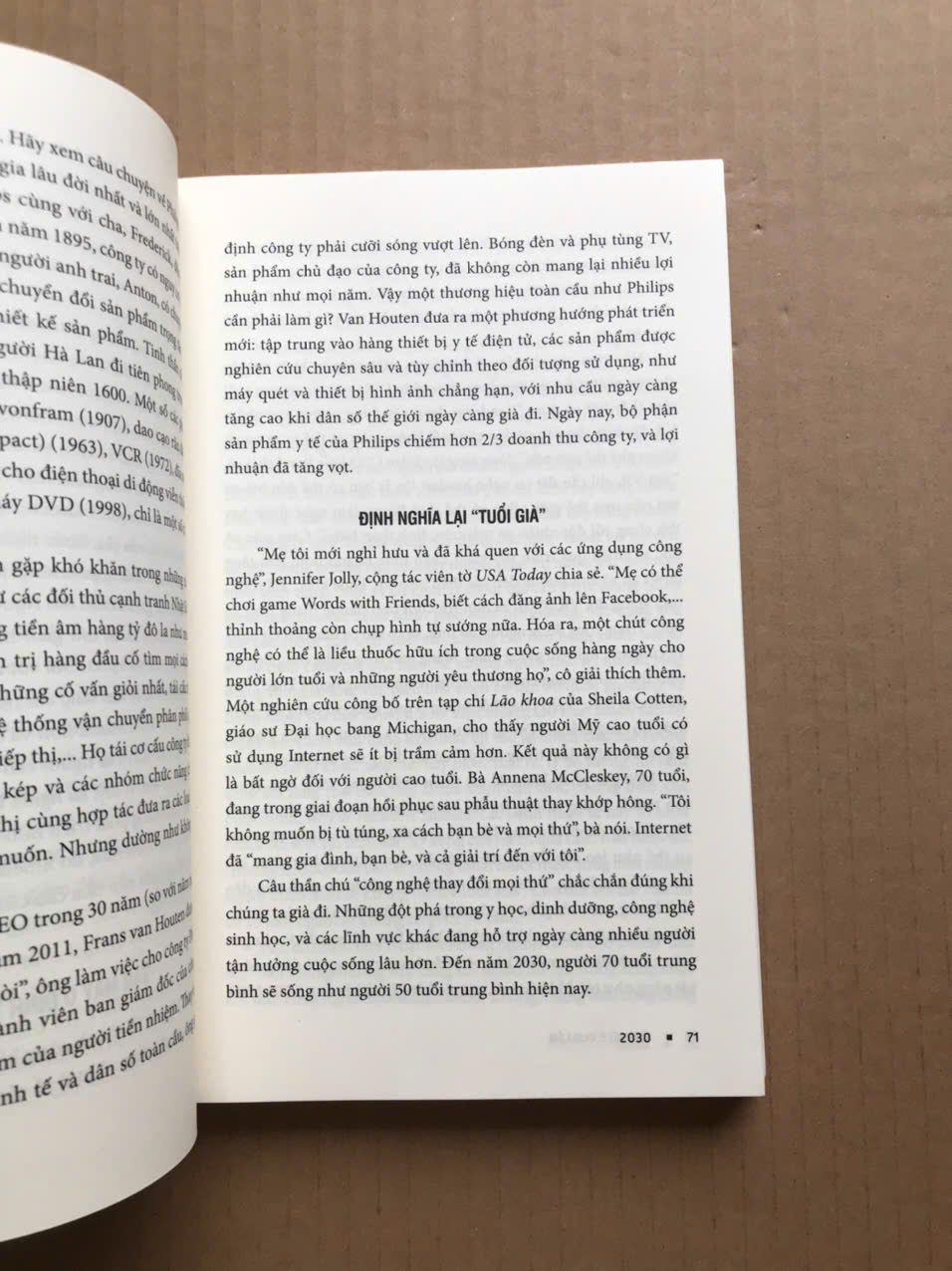Năm 2030, không còn là một thời điểm xa xôi trong tương lai mù mịt, nó đang đến rất gần, và chúng ta cần phải gấp rút tự trang bị trước những cơ hội lẫn thách thức. Cuốn sách này sẽ hướng dẫn chúng ta nắm bắt ý nghĩa của những chuyển biến, đưa ra thông điệp lạc quan về tương lai (dù vẫn phải đối mặt với những lo lắng hiện tại); hỗ trợ chúng ta vượt qua cơn biến động mang tính lịch sử, chỉ ra điều gì cần làm và điều gì nên tránh trước những hoàn cảnh mới mẻ, lạ lùng này.