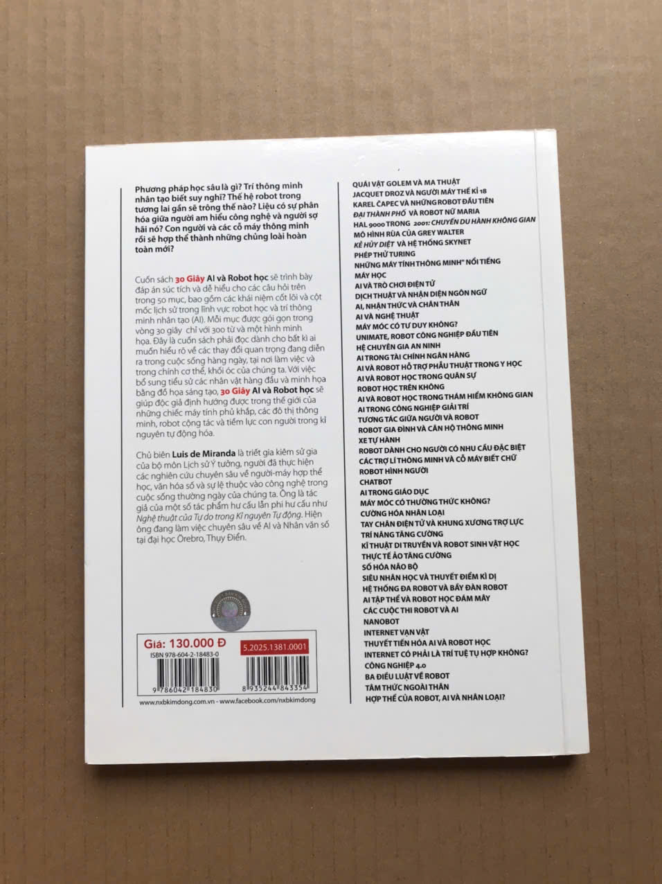 Cuốn sách 30 Giây AI và Robot học sẽ trình bày đáp án súc tích và dễ hiểu cho các câu hỏi trên trong 50 mục, bao gồm các khái niệm cốt lõi và cột mốc lịch sử trong lĩnh vực robot học và trí thông minh nhân tạo (AI). Mỗi mục được gói gọn trong vòng 30 giây – chỉ với 300 từ và một hình ảnh minh họa. Đây là cuốn sách phải đọc dành cho bất kì ai muốn hiểu rõ về các thay đổi quan trọng đang diễn ra trong cuộc sống hàng ngày, tại nơi làm việc và trong chính cơ thể, khối óc của chúng ta. Với việc bổ sung tiểu sử các nhân vật hàng đầu và minh họa bằng đồ họa sáng tạo, 30 Giây AI và Robot học sẽ giúp độc giả định hướng được trong thế giới của những chiếc máy tính phủ khắp, các đô thị thông minh, robot cộng tác và tiềm lực con người trong kỉ nguyên tự động hóa.