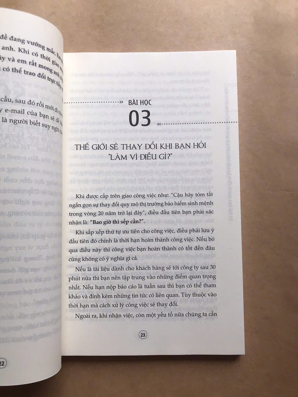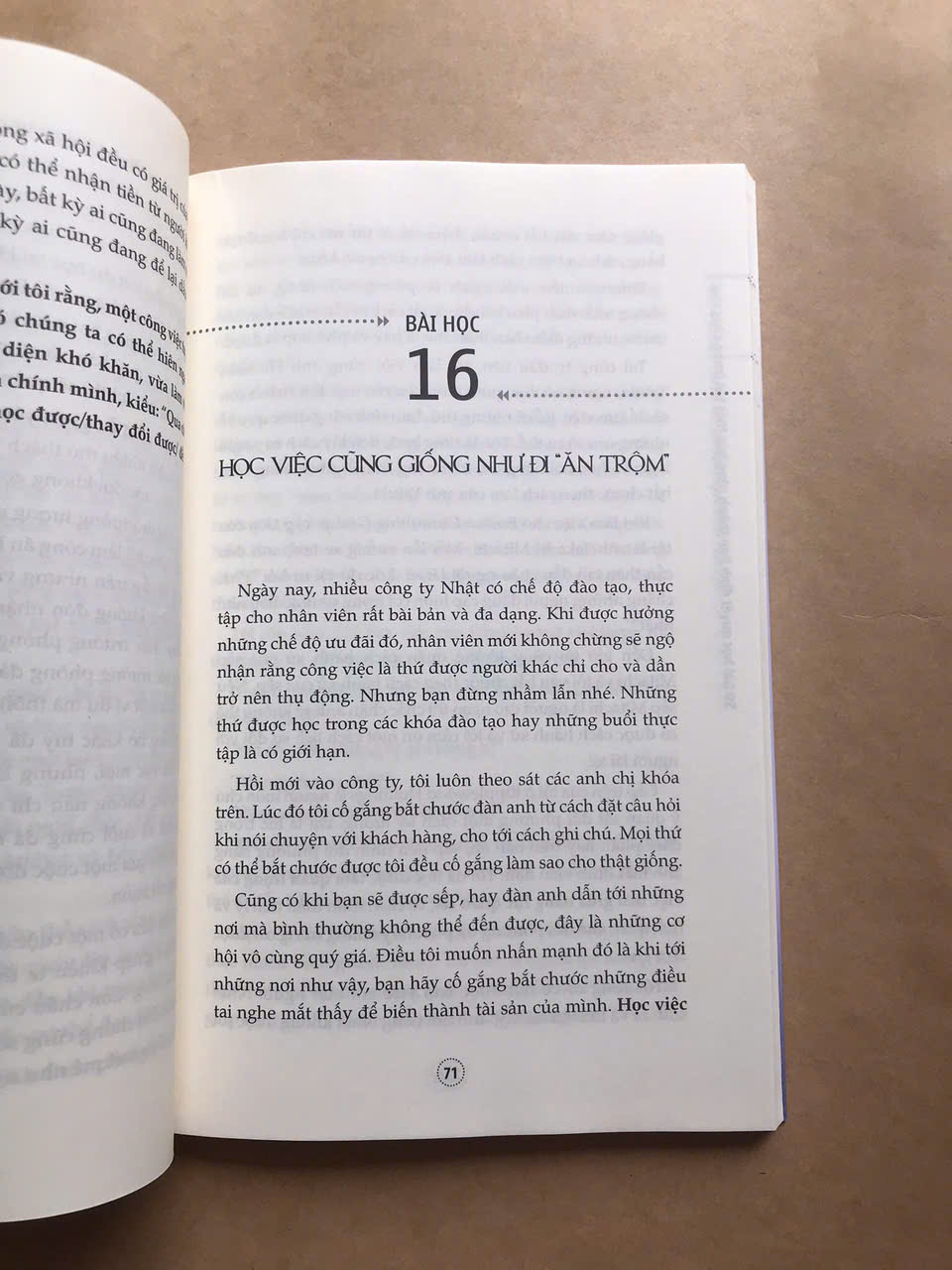 Cuốn sách được coi là sách giáo khoa còn có tên gọi là sách giáo khoa cho nhân viên năm nhất tại Nhật Bản, bởi đây là cuốn sách cầm tay chỉ việc, với 50 bài học vô cùng đơn giản mà hiệu quả như: Không được đến trễ dù bất cứ lý do gì; Luôn trả lời email trong vòng 24 giờ; Hãy viết lại biên bản cuộc họp dù không ai yêu cầu; Chào hỏi to và rõ ràng; Đọc nhiều hơn hai tờ báo mỗi ngày; Ý nghĩa của việc tiếp tục học tập dù đã tới 70 tuổi; Gữi khoảng cách thích hợp với người khác...
