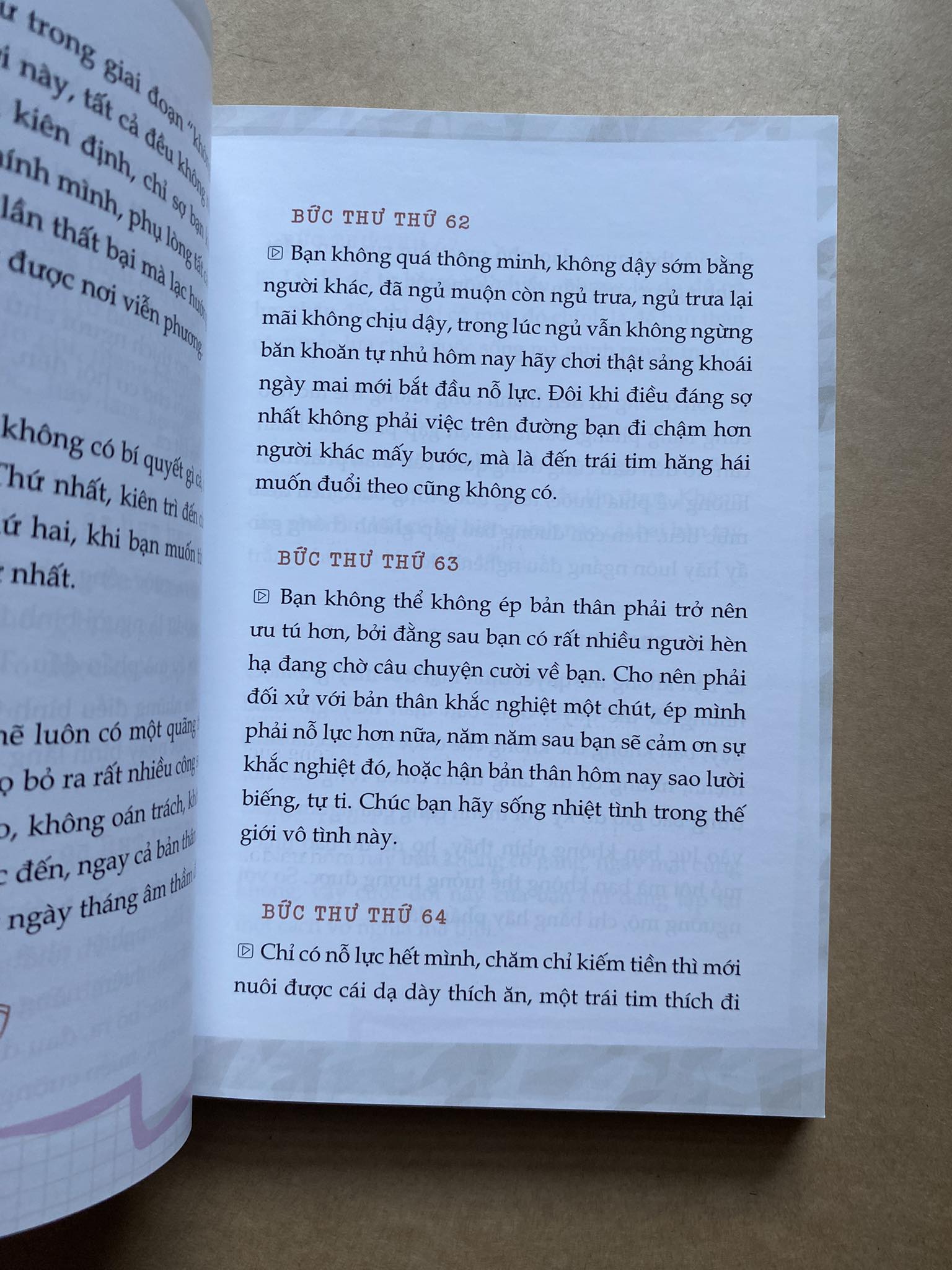 “999 lá thư gửi cho chính mình” là một tác phẩm đặc biệt đầy cảm hứng đến từ tác giả văn học mạng nổi tiếng Miêu Công Tử, mang một màu sắc riêng biệt qua những lời thư nhỏ nhắn nhủ đến người đọc về giá trị cuộc sống, tình yêu, tuổi trẻ, tương lai… v.v..