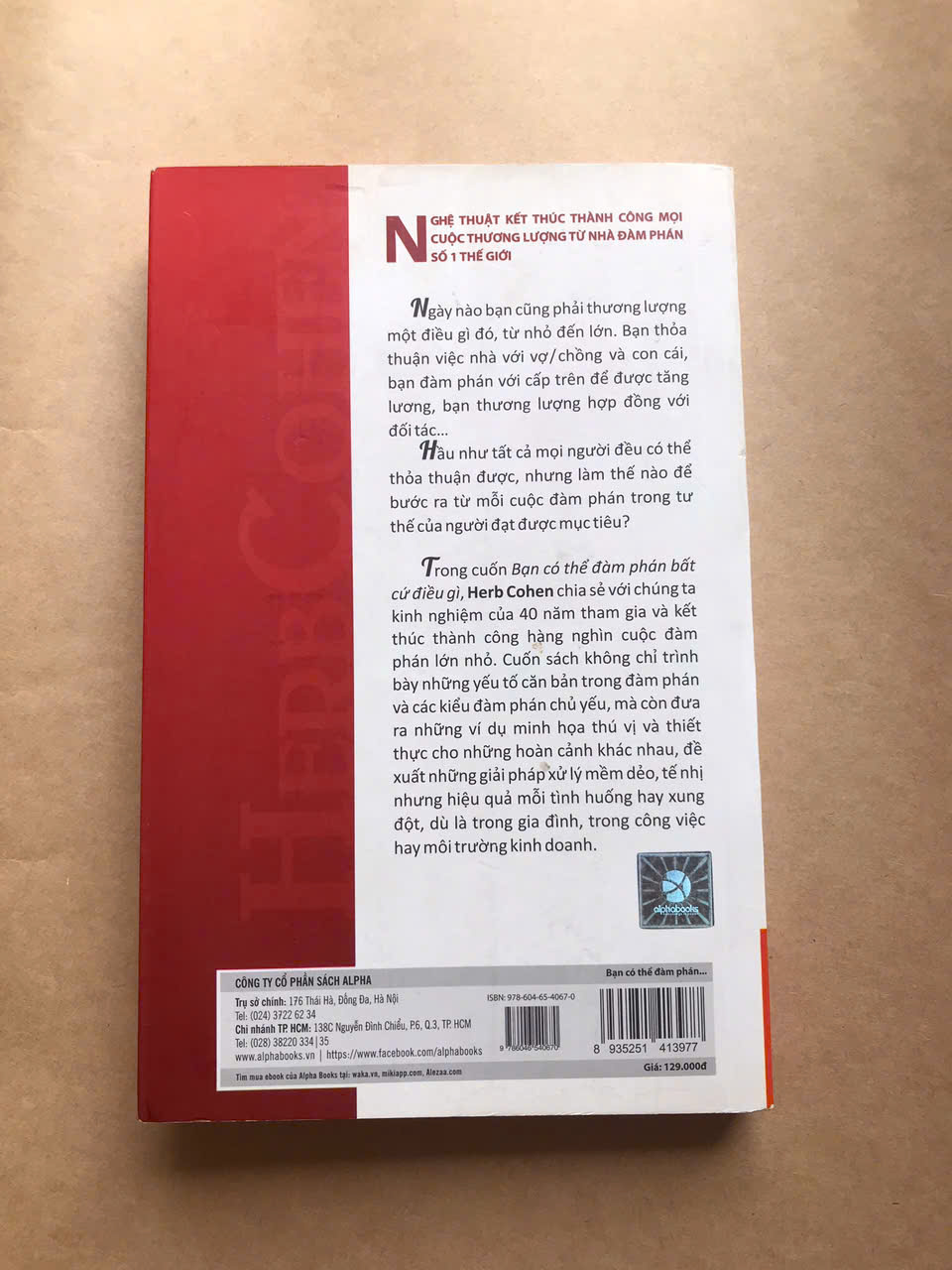 Trong cuốn sách Bạn có thể đám phám bất cứ điều gì, Herb Cohen chia sẻ với chúng ta kinh nghiệm của 40 năm tham gia và kết thúc thành công hàng nghìn cuộc đàm phán lớn nhỏ. Cuốn sách về Đàm phán và Thuyết phục này không chỉ trình bày những yếu tố căn bản trong đàm phán và các kiểu đàm phán chủ yếu, mà còn đưa ra những ví dụ minh hoạ thú vị và thiết thực cho những hoàn cảnh khác nhau, đề xuất những giải pháp xử lý mềm dẻo, tế nhị nhưng hiệu quả mỗi tình huống hay xung đột, dù là trong gia đình (Khi trẻ con khóc đòi quà…), trong cuộc sống hàng ngày (Khi vợ bạn im lặng.....), trong công việc (Khi xin tăng lương….) hay môi trường kinh doanh (Khi khai thuế lợi tức, khi mua đất…). Vì thế, Bạn có thể đàm phán bất cứ điều gì đã trở thành một trong những cuốn sách bán chạy nhất tại Mỹ hơn 9 tháng liền, và đã được dịch ra trên 20 thứ tiếng.