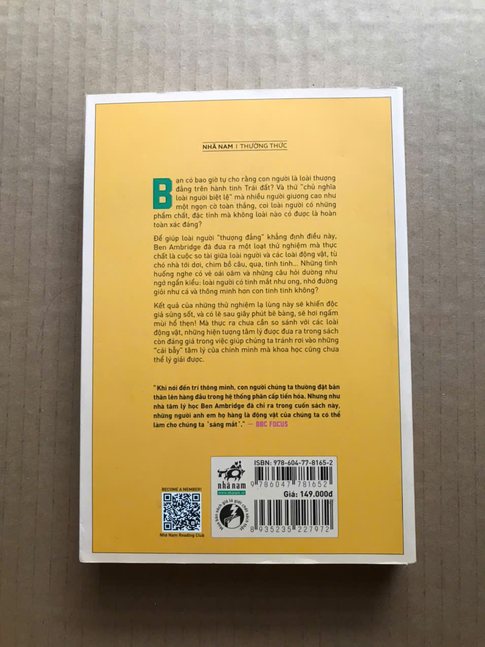 Để giúp loài người “thượng đẳng” khẳng định điều này, tác giả Ben Ambridge đã đưa ra một loạt thử nghiệm mà thực chất là cuộc so tài giữa loài người và các loài động vật, từ chó nhà tới dơi, chim bồ câu, quạ, tinh tinh… Những tình huống nghe có vẻ oái oăm và những câu hỏi dường như ngớ ngẩn kiểu: loài người có tinh mắt như ong, nhớ đường giỏi như cá và thông minh hơn con tinh tinh không?