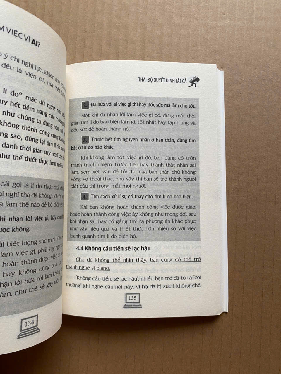 Có rất ít người nhận ra không phải vì tuổi tác tăng lên mà là tự thân họ không muốn phát triển, cho nên họ phát triển rất chậm hoặc chững lại. Cuộc đời này vốn ngắn ngủi, nếu ta sống mà không tiếp tục phát triển thì thật đáng tiếc. Công việc cũng như vậy, nếu chúng ta cứ mơ mộng viển vông, không có chí tiến thủ, không biết cầu tiến… tất nhiên không thể thành công.