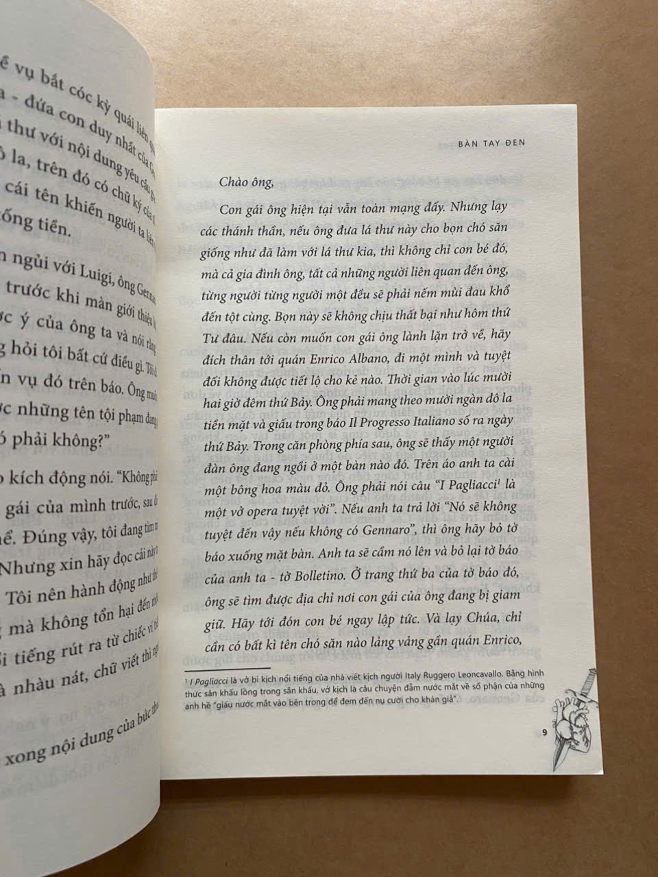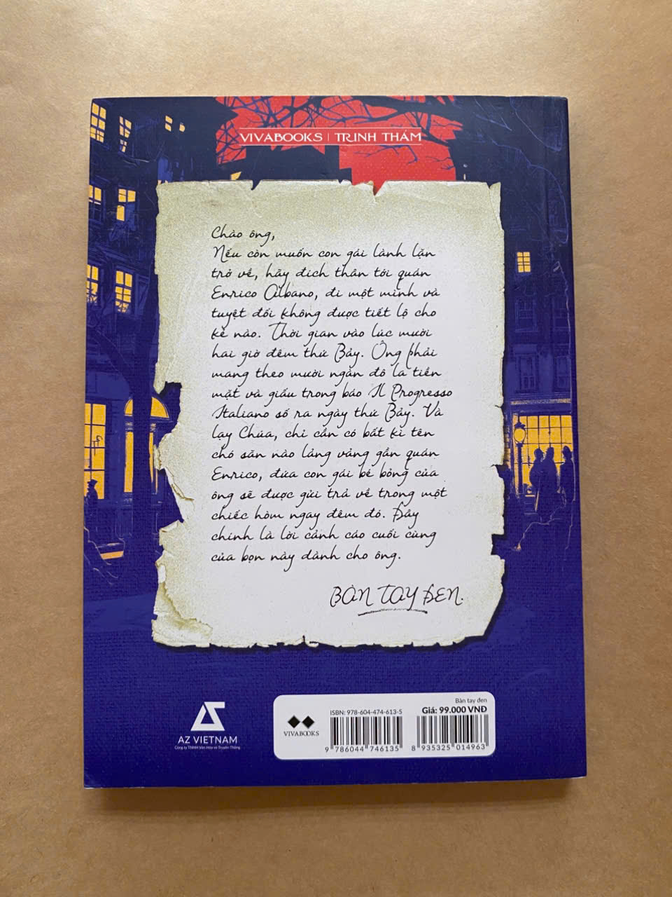 “Chào ông, con gái của ông hiện tại vẫn an toàn. Nhưng lạy các thánh thần, nếu ông đưa lá thư này cho cảnh sát giống như những gì ông đã làm với lá thư kia, thì không chỉ con bé mà cả gia đình ông, những người thân thiết với ông, đều sẽ phải gánh chịu hậu quả. Nếu ông còn muốn con gái lành lặn trở về, hãy đích thân tới quán Enrico Albano, đi một mình và tuyệt đối không được tiết lộ cho kẻ nào. Thời gian vào lúc mười hai giờ đêm thứ Bảy. Ông phải mang theo mười ngàn đô la tiền mặt và giấu trong báo Il Progresso Italiano số ra ngày thứ Bảy. Và lạy Chúa, chỉ cần có bất kì tên chó săn nào lảng vảng gần quán Enrico, đứa con gái bé bỏng của ông sẽ được gửi trả về trong một chiếc hòm ngay đêm đó. Đây chính là lời cảnh cáo cuối cùng của bọn này dành cho ông.”