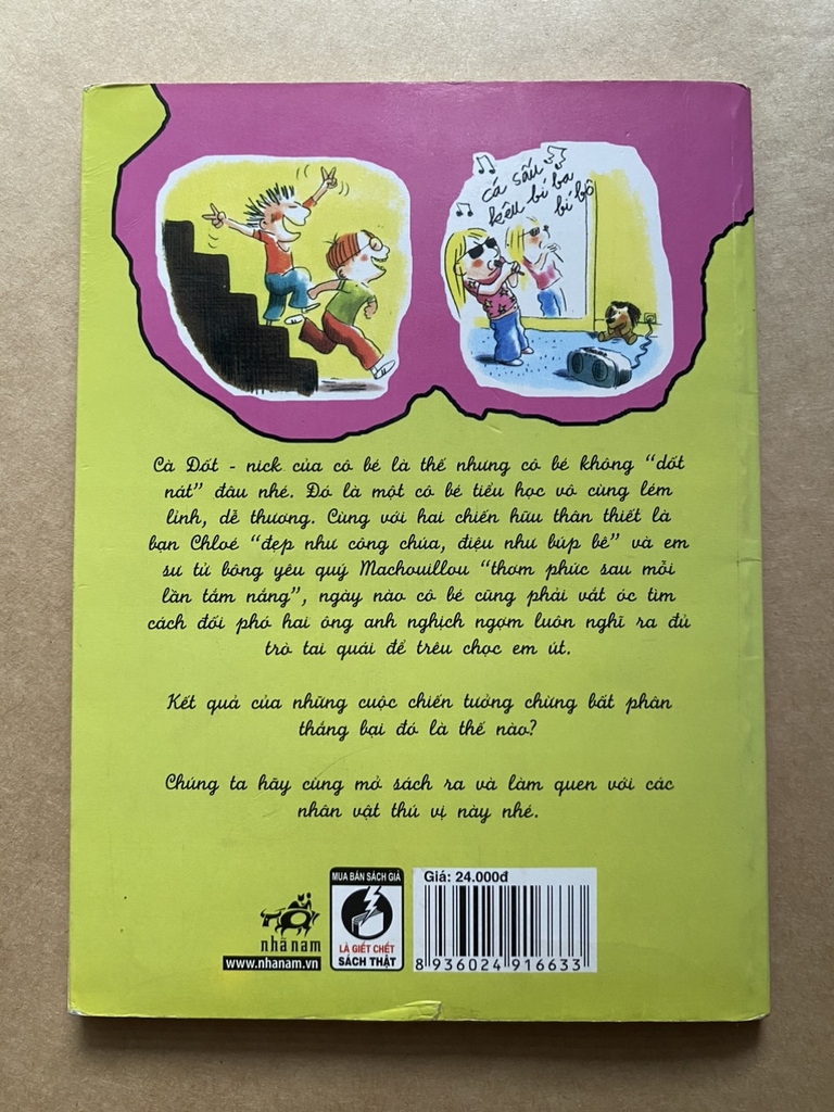 Cà Dốt – nick của cô thế nhưng cô không “dốt nát” đâu nhé. Cô là một cô bé tiểu học vô cùng lém lỉnh, dễ thương. Cùng với hai chiến hữu thân thiết là bạn Chloé “đẹp như công chúa, điệu như búp bê” và em sư tử bông yêu quý Machouillou “thơm phức sau mỗi lần tắm nắng”, ngày nào cô cũng phải vắt óc tìm cách đối phó hai ông anh nghịch ngợm luôn nghĩ ra đủ trò tai quái để trêu trọc em út.