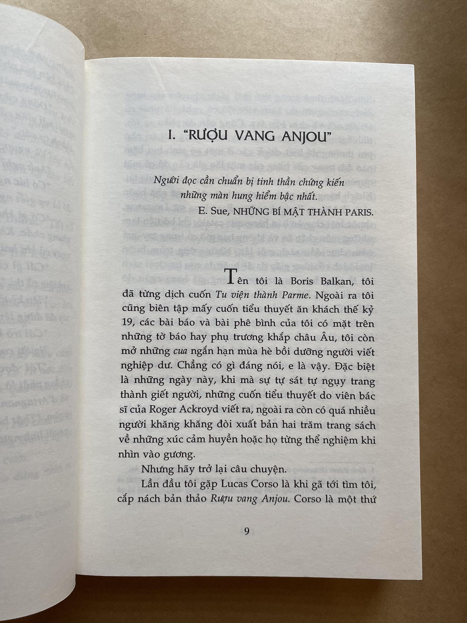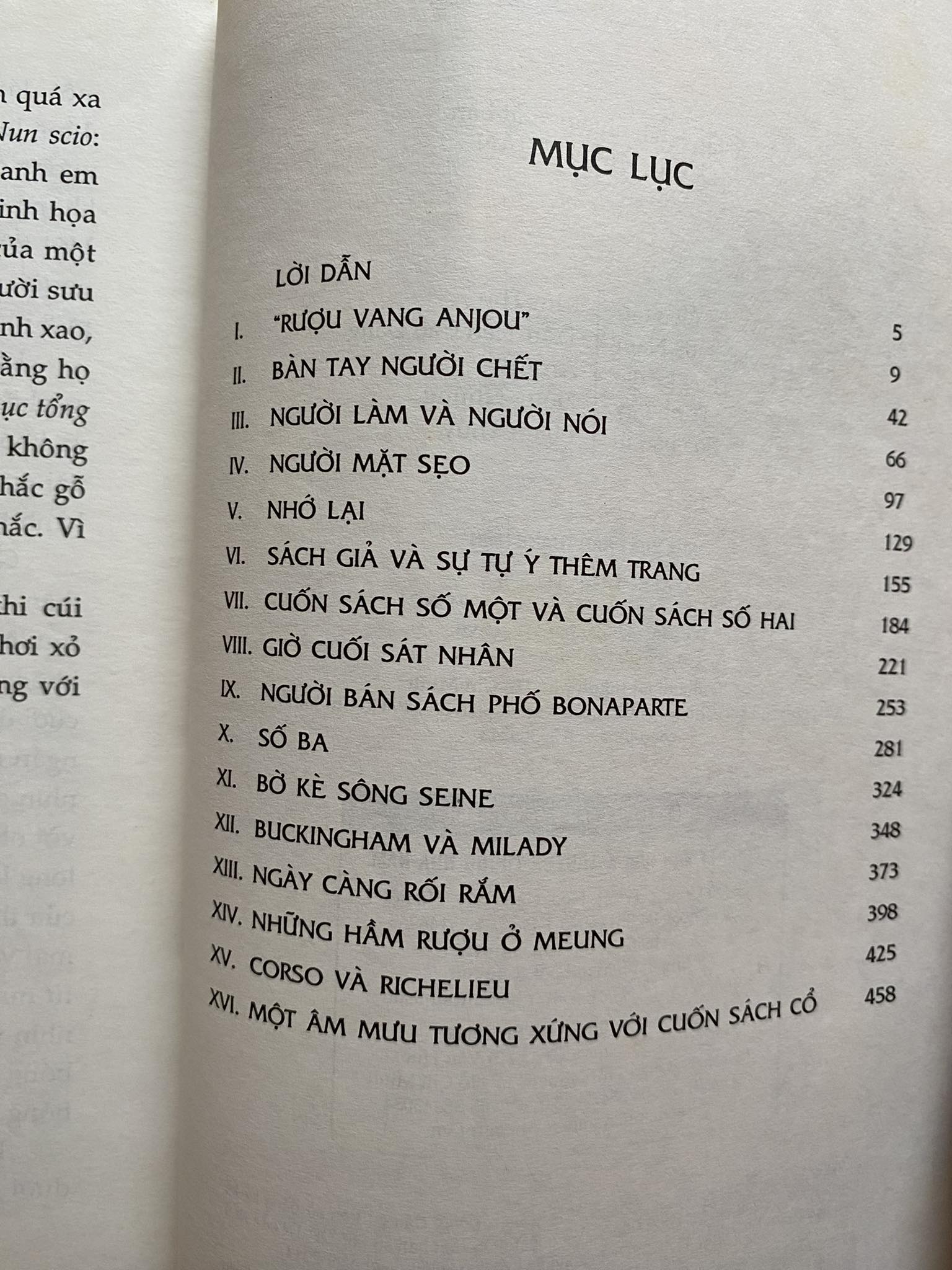 Và đây người hùng của chúng ta xuất hiện: Lucas Corso, tay buôn sách chuyên nghiệp, kẻ chưa từng có thể ngờ rằng một ngày kia mình sẽ trở thành một “thám tử” ngày một dấn sâu hơn vào một mạng lưới khôn dò, đen tối, tanh mùi máu hưng đồng thời thấm đẫm tính trí tuệ của những âm mưu giết người và chiếm đoạt tàn độc liên quan đến những trang sách. Tại sao những trang sách lại có thứ sức mạnh quái gở đến vậy? Corso rồi sẽ đi từ những sự cố bất ngờ nào đến những khám phá choáng người nào?..