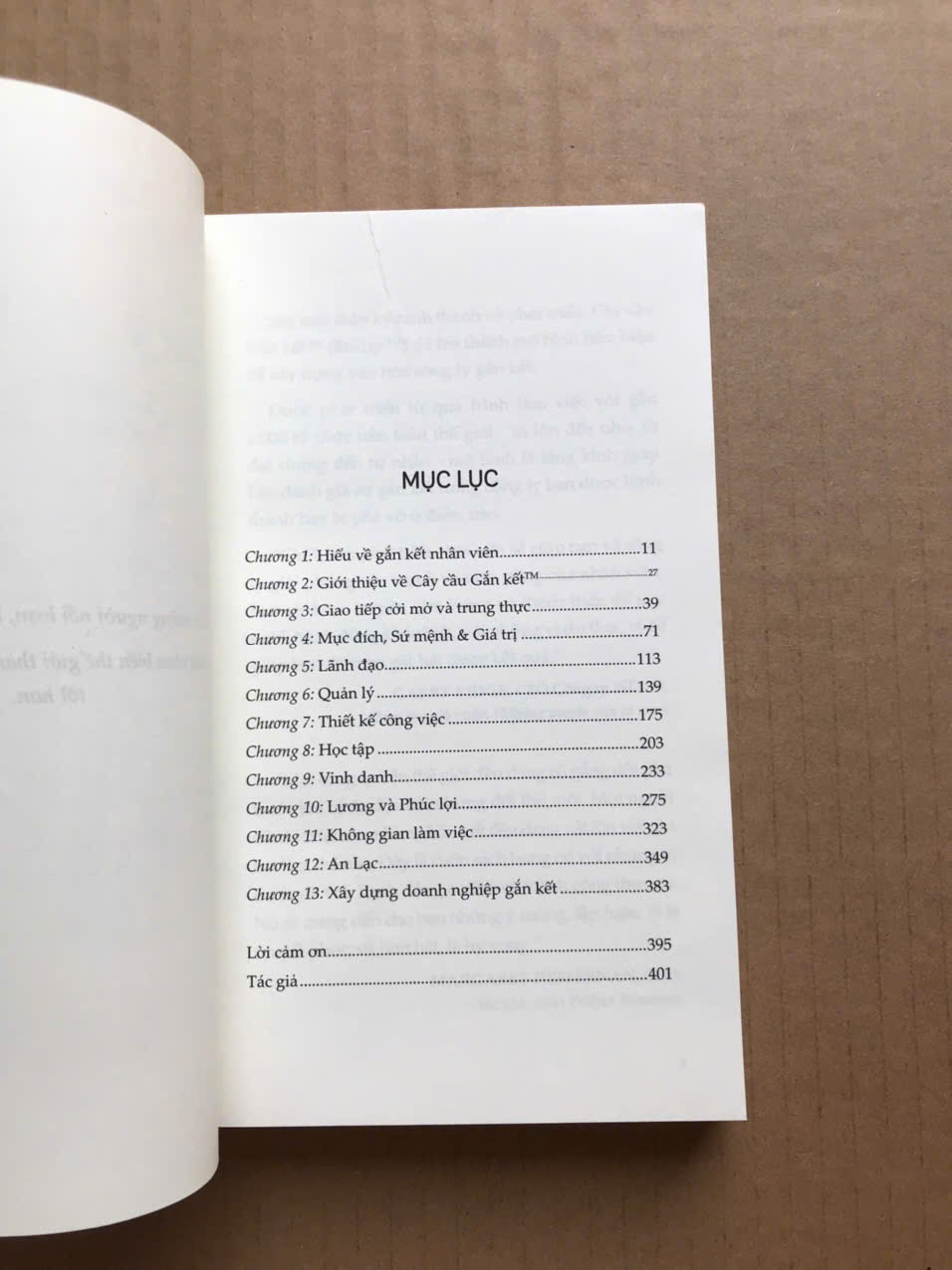 Tác giả Glenn Elliott, một doanh nhân liên tục được công nhận, giành được nhiều giải thương, kể câu chuyện 10 năm của Reward Gateway - phát triển từ công ty khởi nghiệp đến dẫn đầu hạng mục 500 triệu đô la trong công nghệ gắn kết nhân viên. Ông vạch ra những cạm bẫy và đúc rút bài học từ việc thách thức hiện trạng và thay đổi cách các công ty nghĩ về con người, văn hóa và những nhân viên bình thường của họ. Ông giải thích về Cây cầu Gắn kết, một mô hình gồm 10 thành phần giúp xây dựng mối quan hệ gắn kết cao, bền vững và sinh lợi giữa công ty với nhân viên.