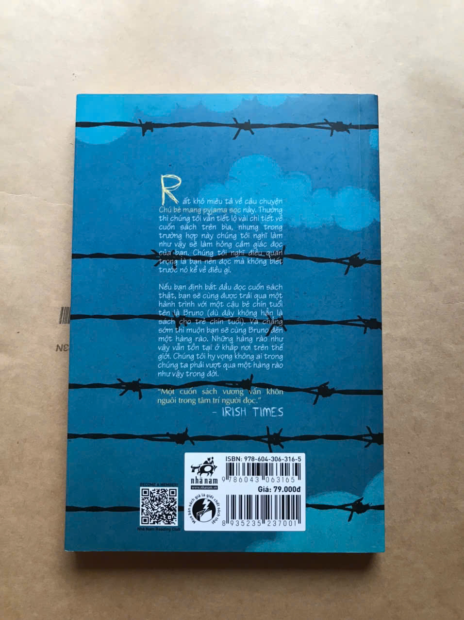 Nếu bạn định bắt đầu đọc cuốn sách thật, bạn sẽ cùng được trải qua một hành trình với một cậu bé chín tuổi tên là Bruno (dù đây không hẳn là sách cho trẻ chín tuổi). Và chẳng sớm thì muộn bạn sẽ cùng Bruno đến một hàng rào. Những hàng rào như vậy vẫn tồn tại ở khắp nơi trên thế giới. Chúng tôi hy vọng không ai trong chúng ta phải vượt qua một hàng rào như vậy trong đời.