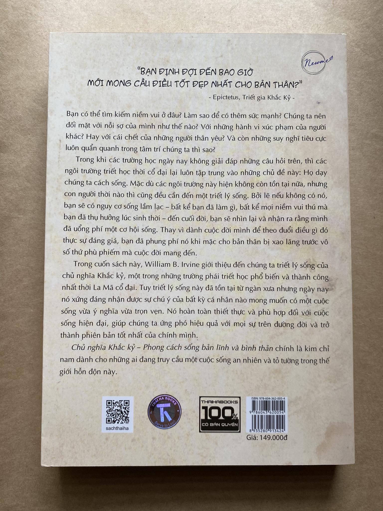 Trong quá trình viết cuốn sách này, tôi luôn đặt ra trong đầu câu hỏi: Nếu các nhà Khắc kỷ cổ đại đảm nhận trọng trách viết một cuốn sách hướng dẫn cho những người sống ở thế kỷ hai mốt – một cuốn sách chỉ cho chúng ta cách có được một cuộc sống tốt đẹp – thì cuốn sách đó sẽ như thế nào. Các trang tiếp theo là câu trả lời của tôi cho câu hỏi này.” Chia sẻ của tác giả William B.Irvine tới bạn đọc!