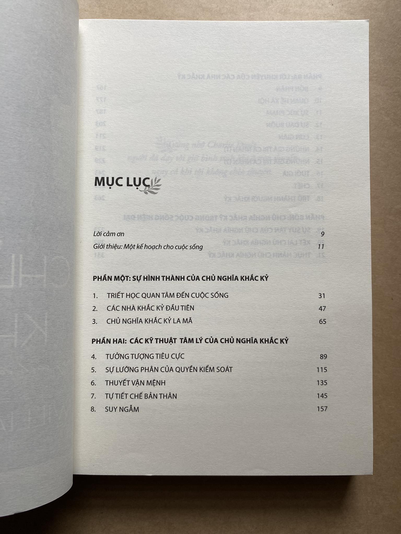 Tôi cần phải nói thêm rằng ngay cả những người theo thuyết bất khả tri cũng hoàn toàn có thể đồng thời thực hành chủ nghĩa Khắc kỷ Phần còn lại của cuốn sách này được chia làm bốn phần. Trong phần 1, tôi trình bày sự hình thành của triết học. Mặc dù các triết gia hiện đại thường dành cả đời để tranh luận về các chủ đề trừu tượng, nhưng mục tiêu chính của hầu hết các triết gia cổ đại là giúp người bình thường sống tốt hơn. Như chúng ta sẽ thấy, chủ nghĩa Khắc kỷ là một trong những trường phái triết học cổ đại phổ biến và thành công nhất.