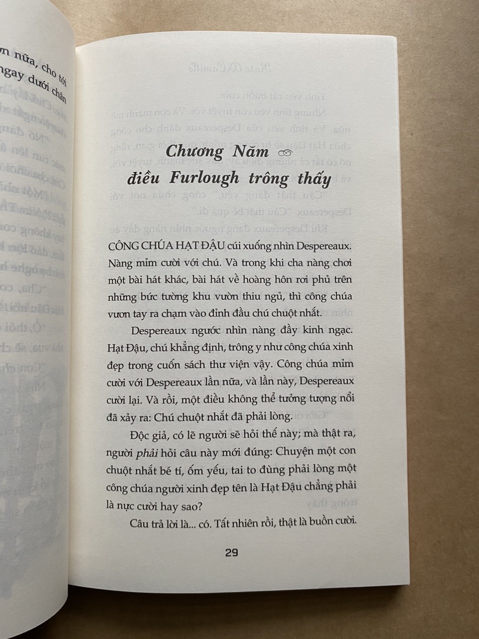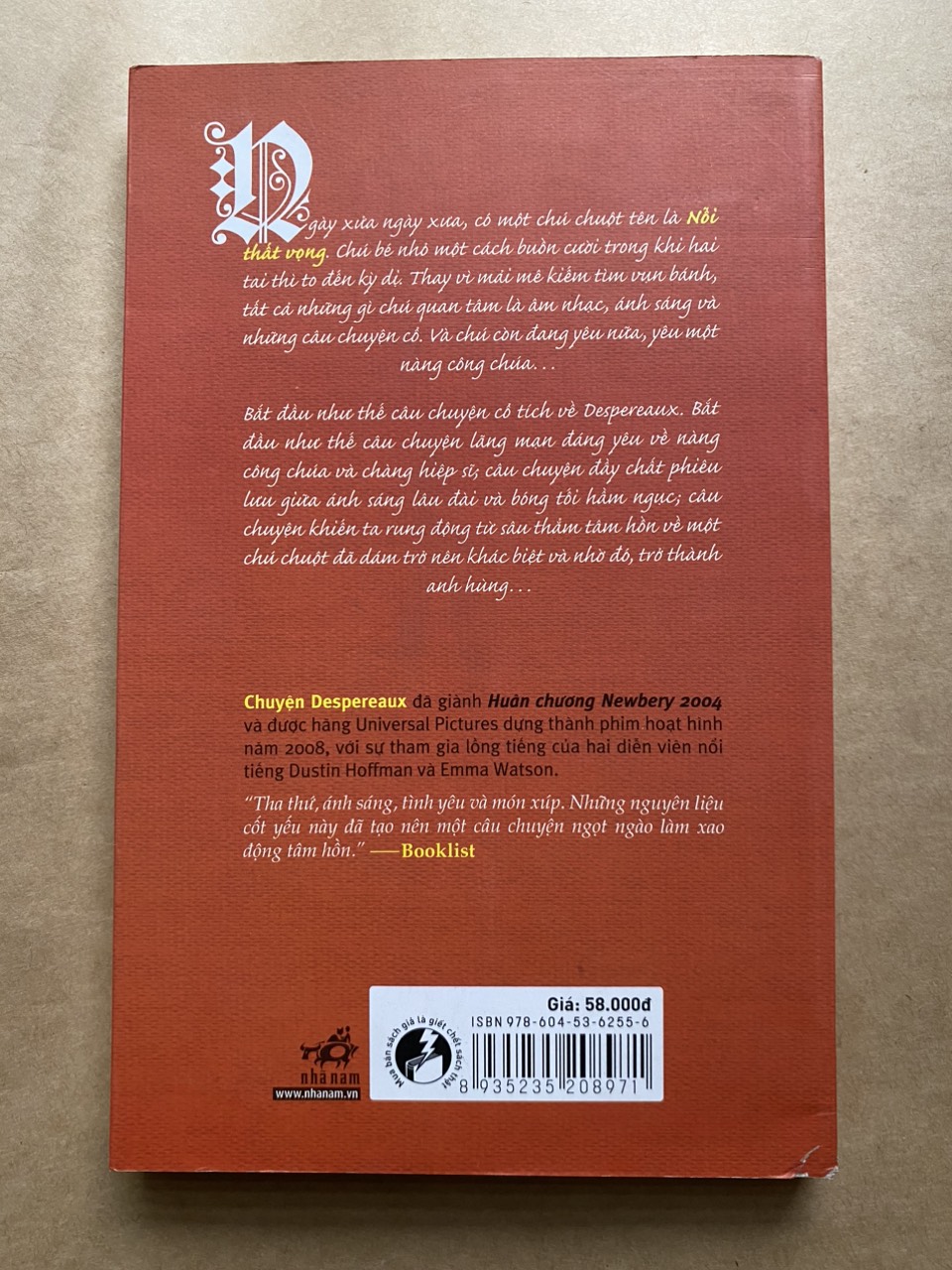 Bắt đầu như thế câu chuyện cổ tích về Despereaux. Bắt đầu như thế câu chuyện lãng mạn đáng yêu về nàng công chúa và chàng hiệp sĩ; câu chuyện đầy chất phiêu lưu giữa ánh sáng lâu đài và bóng tối hầm ngục; câu chuyện khiến ta rung động từ sâu thẳm tâm hồn về một chú chuột đã dám trở nên khác biệt và nhờ đó, trở thành anh hùng...