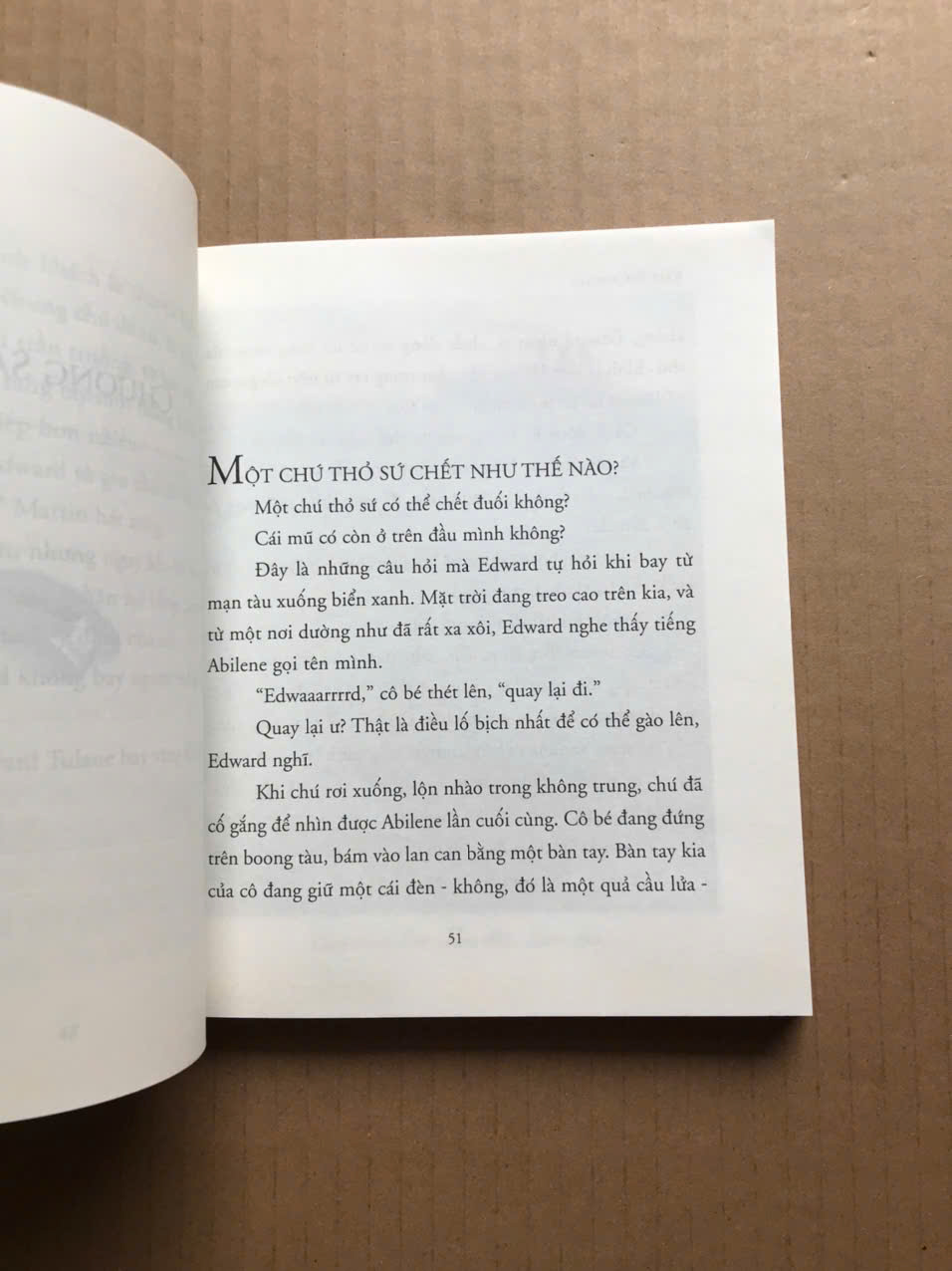 Ngày xưa, trong ngôi nhà trên phố Ai Cập, có một chú thỏ bằng sứ tên là Edward Tulane. Chú được làm ra bởi một người chế tác đồ chơi bậc thầy, được mặc trên người những bộ quần áo tuyệt hảo đặt may riêng.Chú vô cùng ngưỡng mộ và đề cao bản thân, không màng tới cô chủ Abilene đang vô cùng nâng niu chú. Thế nhưng, trên chuyến đi lênh đênh vượt đại dương, một thằng bé đã vô tình quăng chú khỏi mạn tàu. Và từ đó, hành trình lưu lạc của Edward bắt đầu.