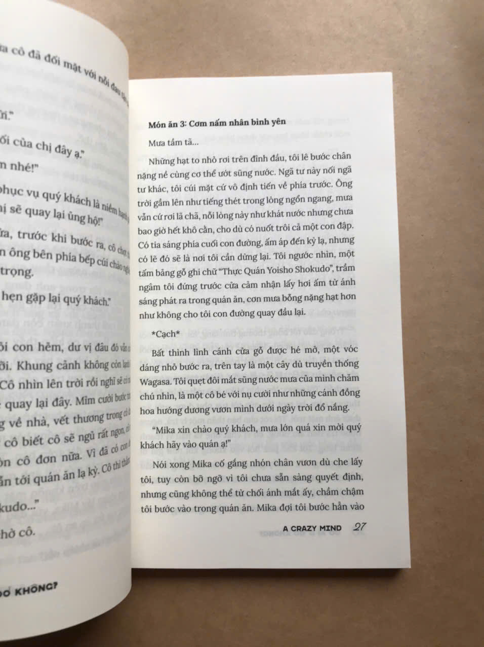 Với sự kết hợp của nhiều tác giả trong A Crazy Mind, cuốn sách là tập hợp những câu chuyện lạ mà quen. Mỗi câu chữ đem đến một thế giới riêng, một chiếc giếng riêng của cuộc đời mà cả tất cả chúng ta ai cũng đã ít nhất một lầm gặp phải và song song với đó là cách để ta tìm lối thoát ra khỏi sự chơi vơi không đích đến của chiếc giếng sâu thẳm trong tâm hồn.