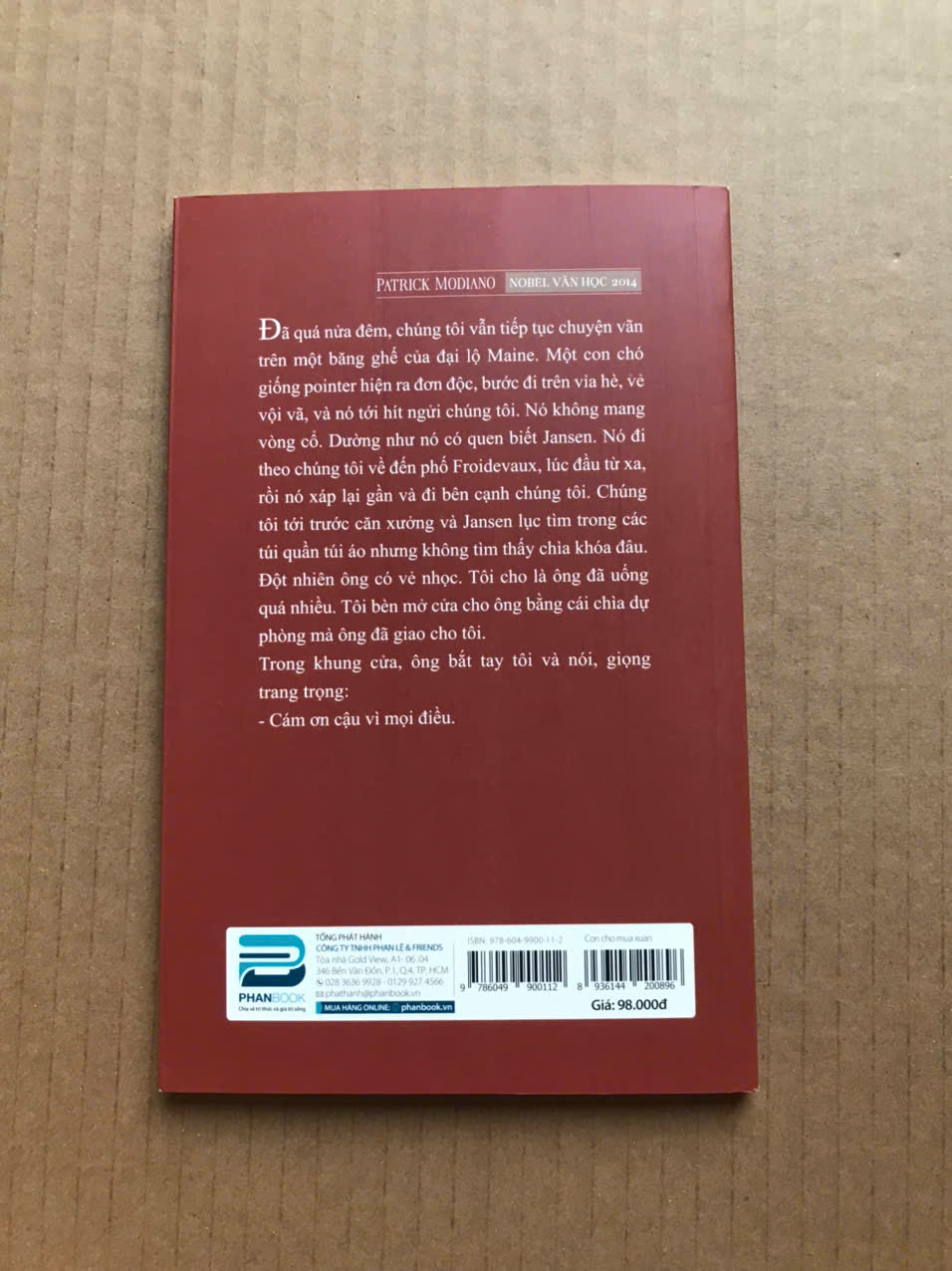 Con chó mùa xuân là một trong bộ ba tiểu thuyết được Phanbook phát hành vào năm nay. Vẫn với lối viết đơn giản mà tinh tế, Patick Modiano đã dần người đọc vào một hành trình lạ lùng khi hai con đường ngược nhau, cắt nhau nơi ký ức. Như một tất định của đời sống, có tồn tại rồi sẽ có lãng quên, cuối cùng thì không gì có thể níu kéo được hiện hữu thuộc về quá khứ, và tất cả được chứa đựng trong lặng im vĩnh viễn.