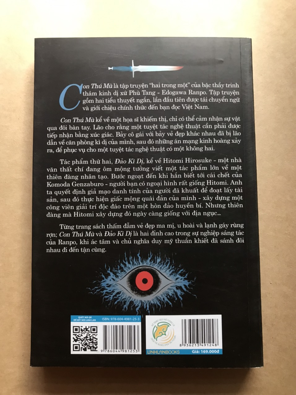 Từng trang sách thấm đẫm vẻ đẹp ma mị, u hoài và lạnh gáy rùng rợn, "Con thú mù" và "Đảo kì dị" là hai đỉnh cao trong sự nghiệp sáng tác của Ranpo, khi ác tâm và chủ nghĩa duy mỹ thuần khiết đã sánh đôi nhau đi đến tận cùng.