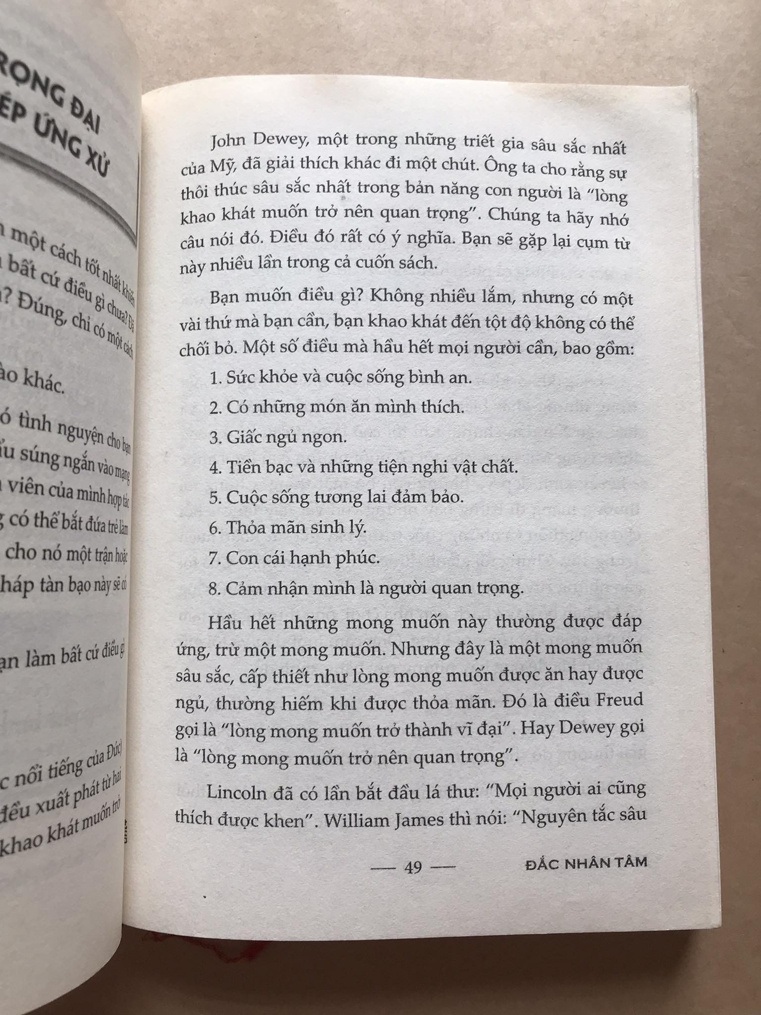 “Nói đến sách nghệ thuật ứng xử thì không thể không nhắc đến "Đắc nhân tâm" của Dale Carnegie. Đây là một trong những cuốn sách gối đầu của nhiều thế hệ đi trước và ngày nay. Với chặng đường hơn 80 năm kể từ khi lần đầu được xuất bản, "Đắc nhân tâm" đã mang đến cho chúng ta bài học vô cùng giá trị đó là nghệ thuật ứng xử để được lòng người. "Đắc nhân tâm" là quyển sách nổi tiếng và bán chạy nhất và có mặt ở hàng trăm quốc gia khác nhau, và hơn thế nữa đây còn là quyển sách liên tục đứng đầu danh mục sách bán chạy nhất do thời báo NewYork Times bình chọn trọng suốt 10 năm liền.” – Cafebiz.vn, 3 cuốn sách nên đọc đi đọc lại trong đời để ngẫm về cuộc sống