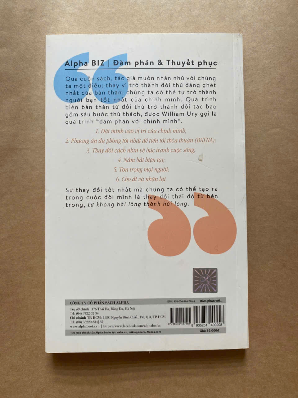 “Không có thỏa thuận nào lớn hơn việc đạt được thỏa thuận với chính mình, không có chiến thắng nào vẻ vang hơn chiến thắng chính bản thân. ” - William Ury