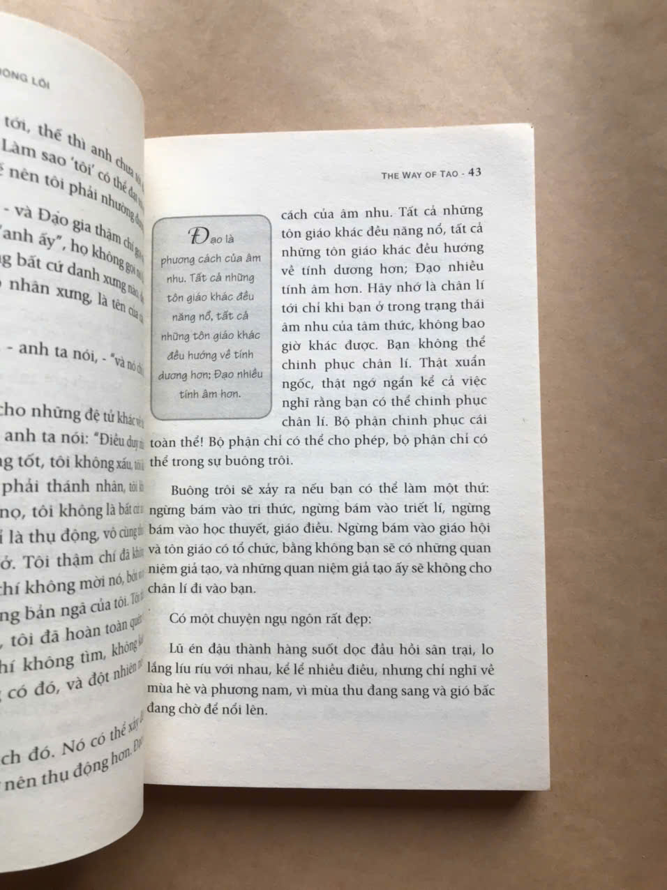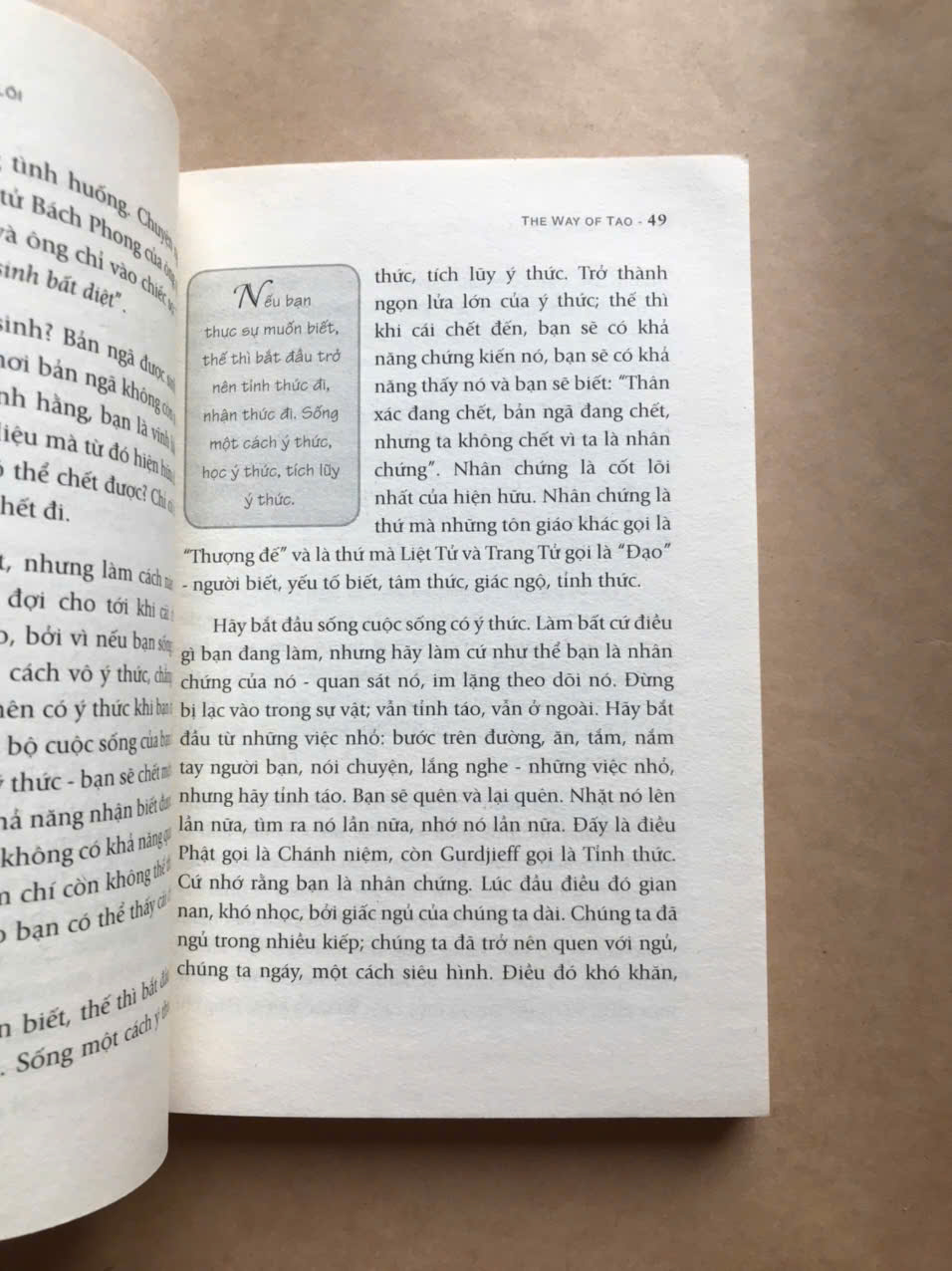 Cuốn sách gồm 5 chương, cùng 1 phần Hỏi - đáp. Trong phần hỏi - đáp, với việc trả lời những thắc mắc của người nghe, tác giả muốn chỉ ra cách áp dụng sự uyên nguyên của triết lý Đạo giáo vào cuộc sống hàng ngày.
