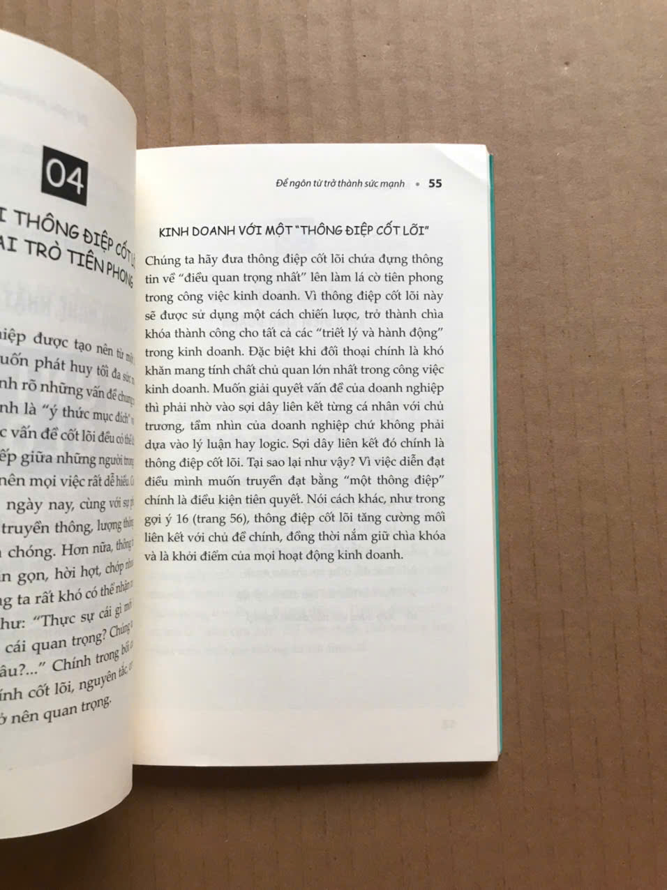 Bằng kinh nghiệm lâu năm làm trong ngành quảng cáo, Nobuyuki Takahashi sẽ chỉ ra cho chúng ta các quy tắc cụ thể để diễn giải các ý tưởng thành các thông điệp cốt lõi, nêu bật lên được sứ mệnh, tầm nhìn cũng như những giá trị căn bản của doanh nghiệp. Cùng với những gợi ý thực tế bao gồm khoảng 150 thông điệp, slogan, phương châm từ các doanh nghiệp thành công tại Nhật Bản và trên thế giới, chúng ta sẽ thấy được quan điểm, cách nhìn và quá trình diễn giải những ý tưởng lớn thành ngôn từ cụ thể.