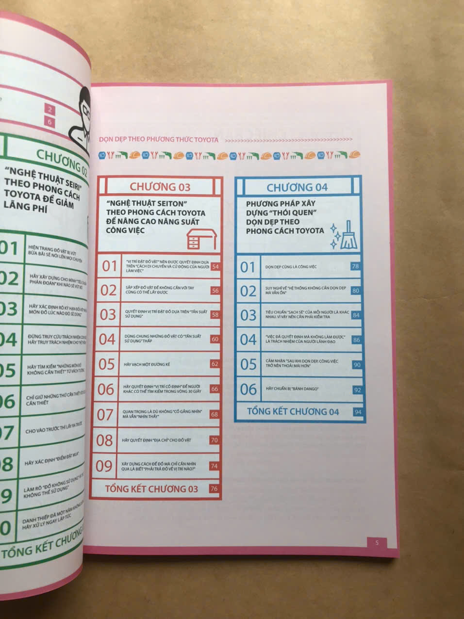 Phương thức sản xuất Toyota được tượng trưng bởi những khái niệm như Just In Time, Kanban, Kaizen. Phương thức này đã quá nổi tiếng khi chúng ta nhắc tới cái tên Toyota. Ở đâu đó vẫn có những suy nghĩ như “văn phòng của chúng tôi không thể bắt chước cách làm nơi công xưởng của Toyota được” hay “một số cá nhân có áp dụng đi chăng nữa thì cũng chẳng có ý nghĩa gì trong tổ chức”. Những suy nghĩ này là những điều ngộ nhận. Just In Time hay Kanban đúng là không phải cách làm mà ai cũng có thể bắt chước ngay được, nhưng dọn dẹp thì dù công ty nhỏ tới mấy, dù bạn làm việc gì đi chăng nữa thì đều có thể áp dụng ngay lập tức. Dọn dẹp theo phương thức Toyota không cần tới một hệ thống lớn, cũng không cần tiêu tốn nhiều kinh phí.