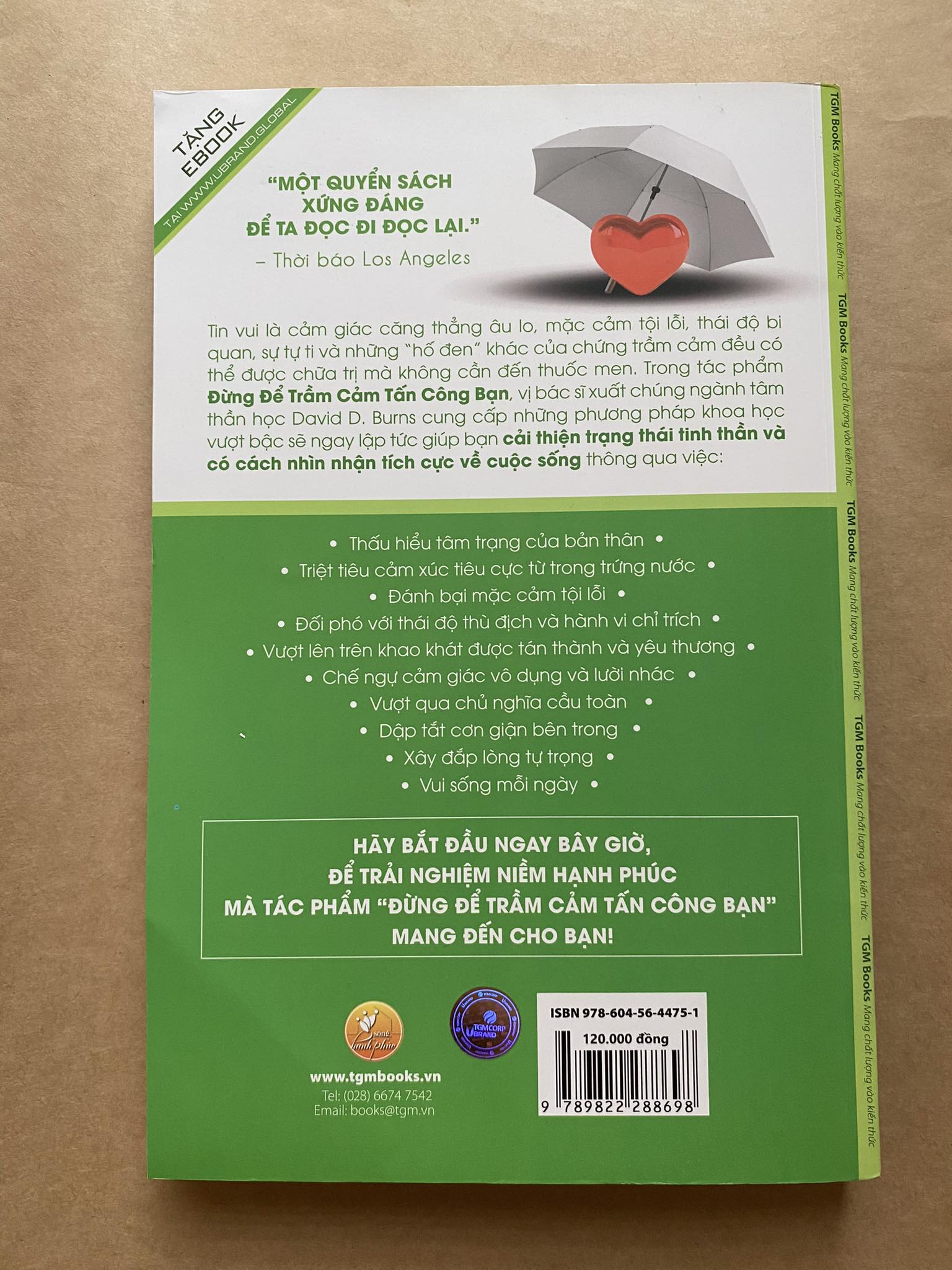 Trong tác phẩm Đừng Để Trầm Cảm Tấn Công Bạn, vị bác sĩ xuất chúng ngành tâm thần học David D. Burns cung cấp những phương pháp khoa học vượt bậc sẽ ngay lập tức giúp bạn cải thiện trạng thái tinh thần và có cách nhìn tích cực về cuộc sống thông qua việc: