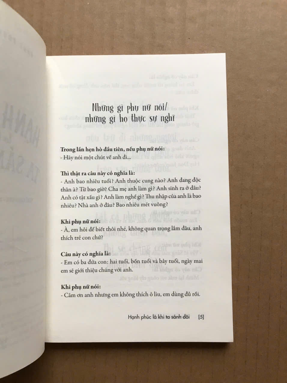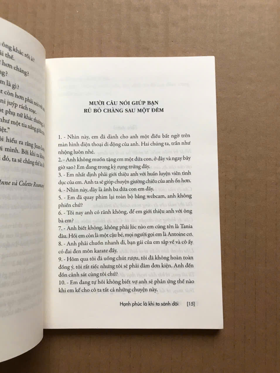 Tìm kiếm, gặp gỡ, yêu đương, kết hôn, cuộc sống gia đình với những sắc màu, những cung bậc cảm xúc khác nhau. Những điều tưởng chừng đã rất quen thuộc, thậm chí nhàm chán bỗng trở nên thật thú vị và ngọt ngào dưới góc nhìn hài hước của tác giả Anne Roumanoff. Dù đang trong hành trình tìm kiếm hay đã có được nửa kia của đời mình, bạn cũng tìm thấy chính mình trong cuốn sách, và mỉm cười nhận ra rằng từng giây phút trong cuộc đời này thật đáng sống, đáng trân trọng biết bao