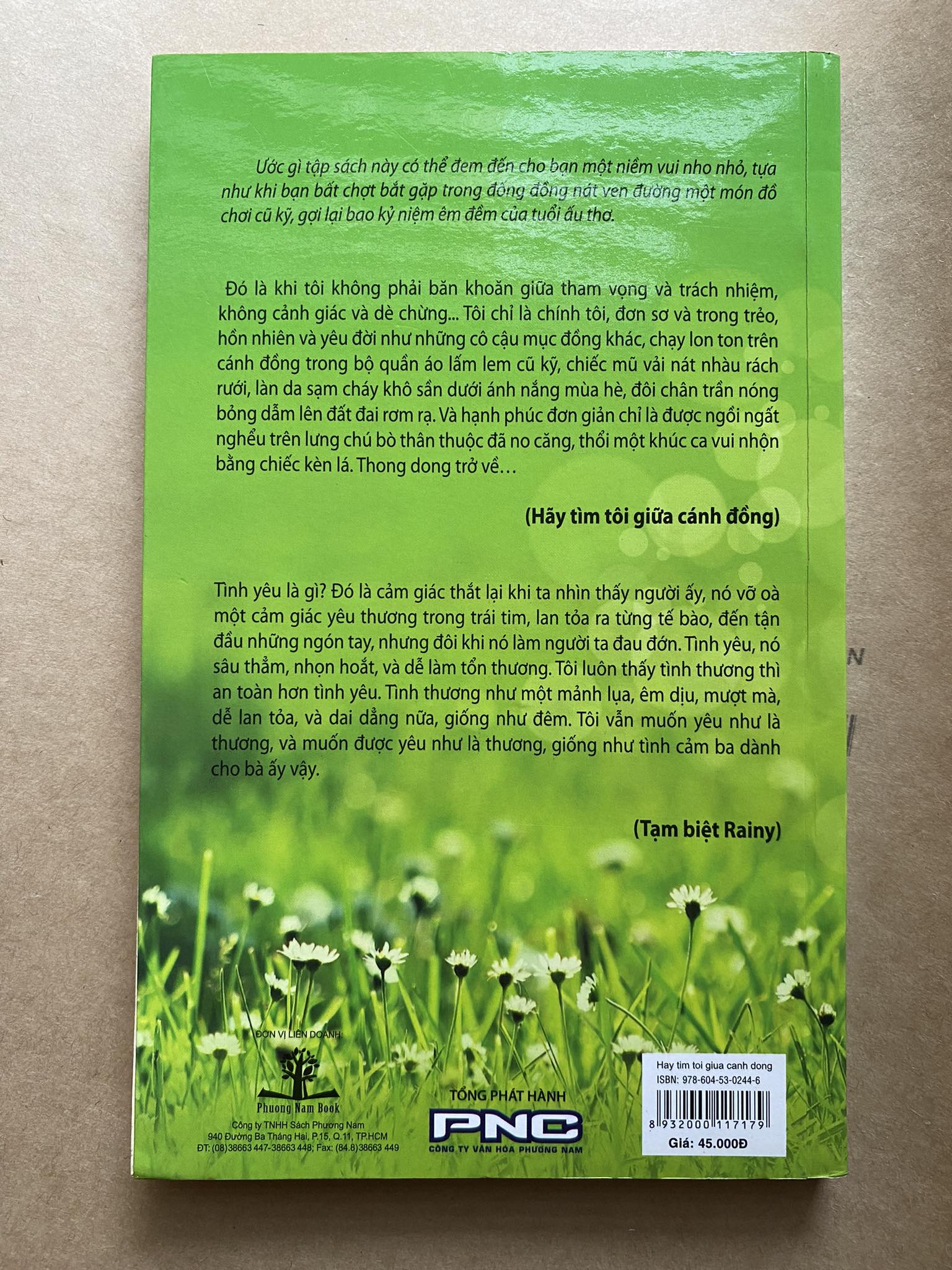 Công ty sách Phương Nam xin trân trọng giới thiệu với bạn đọc quyển Hãy tìm tôi giữa cánh đồng, và cho dù tác giả chỉ mong có thể “đem đến cho bạn một niềm vui nho nhỏ, tựa như khi bạn bất chợt bắt gặp trong đống đồng nát ven đường một món đồ chơi cũ kỹ, gợi lại bao kỷ niệm êm đềm của tuổi ấu thơ”, quyển sách có thể mang đến một điều lớn hơn, là niềm tin yêu vào cuộc sống này, bắt đầu có khi là một niềm luyến tiếc một tuổi thơ êm đềm, một nỗi nhớ quê nhà quay quắt hay một tình bạn tưởng chừng như là mối tình đầu.
