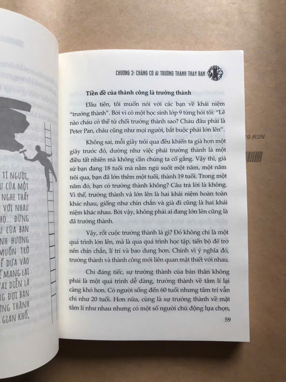 Tiền đề của thành công là sự trưởng thành. Mỗi giây trôi qua ta đều già hơn so với một giây trước đó, vì thế trưởng thành là một điều tất nhiên mà chúng ta không hề phải cố gắng. Vậy giả sử bạn 18 tuổi, bạn nằm ngủ suốt một năm, một năm trôi qua bạn 19 tuổi. Trong một năm đó, bạn có trưởng thành không? Câu trả lời là không. Vì trưởng thành và lớn lên là hai khái niệm hoàn toàn khác nhau, cũng như già đi và chín chắn vậy.