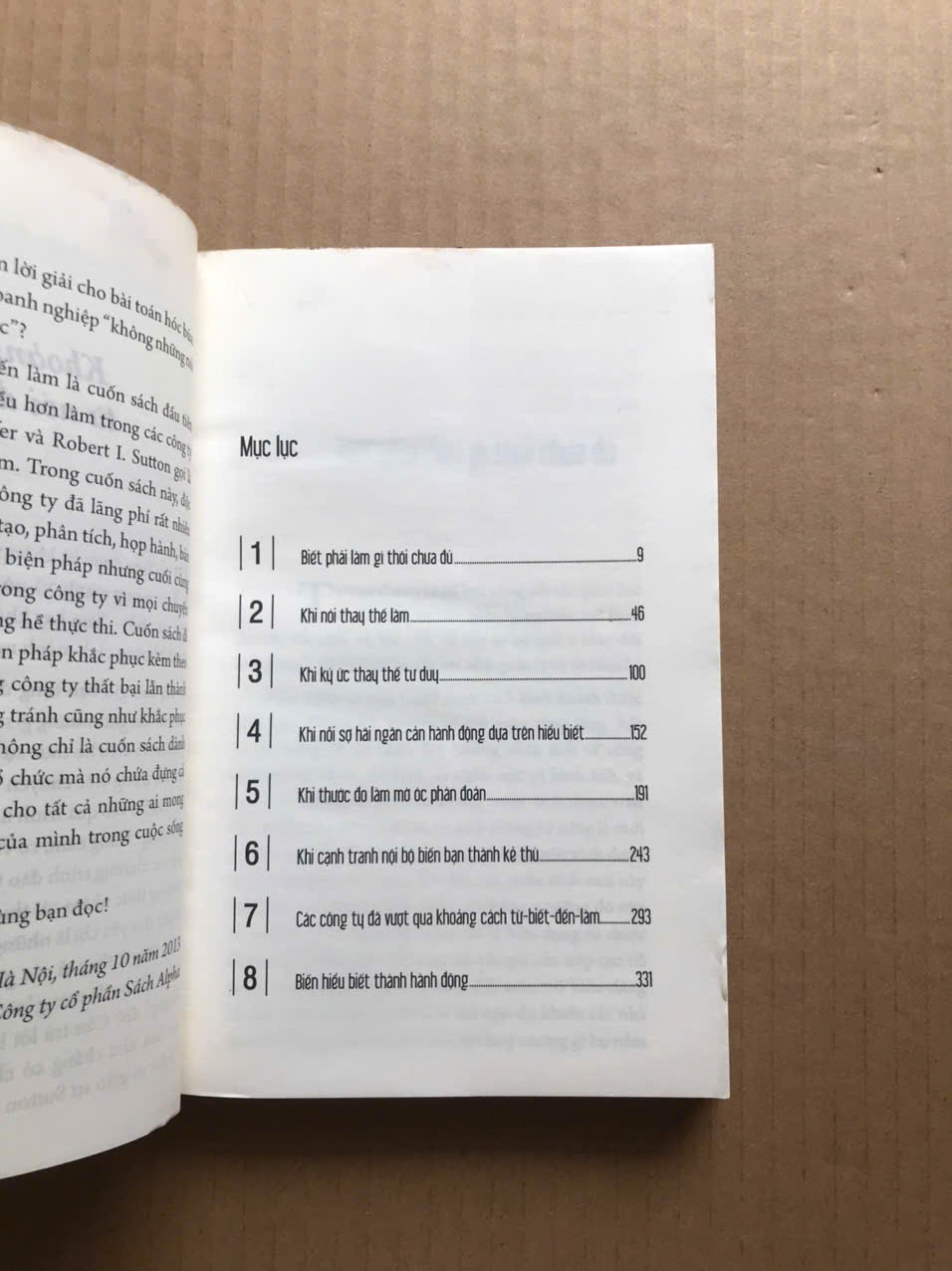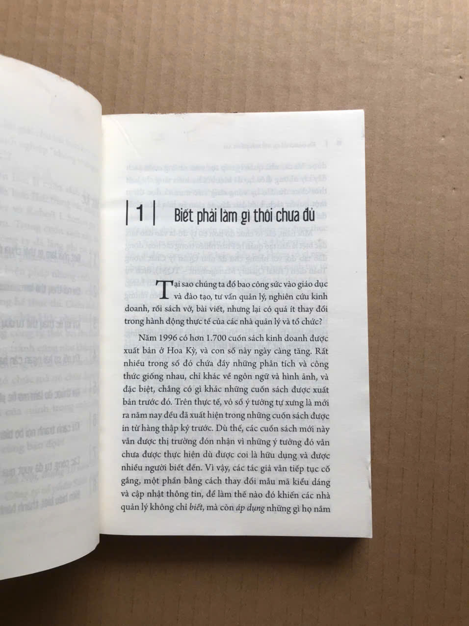 Trong cuốn sách này, Jeffrey Pfeffer và Robert Sutton, những tác giả và giảng viên nổi tiếng, đã xác định nguyên nhân của khoảng cách từ-biết-tới-làm và đưa ra cách lấp đầy khoảng cách đó. Thông điệp trong cuốn sách rất rõ ràng – các công ty muốn biến kiến thức thành hành động phải tránh xa “bẫy nói suông”(smart talk trap). Những kế hoạch, phân tích, cuộc họp, buổi trình bày của nhà điều hành để truyền cảm hứng cho công việc không thể thay thế cho hành động.