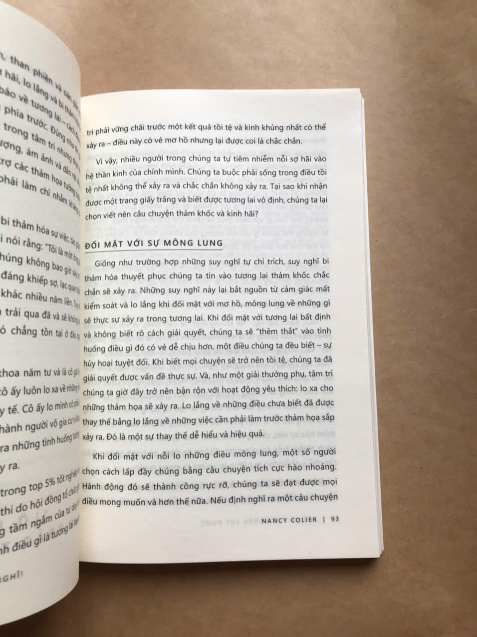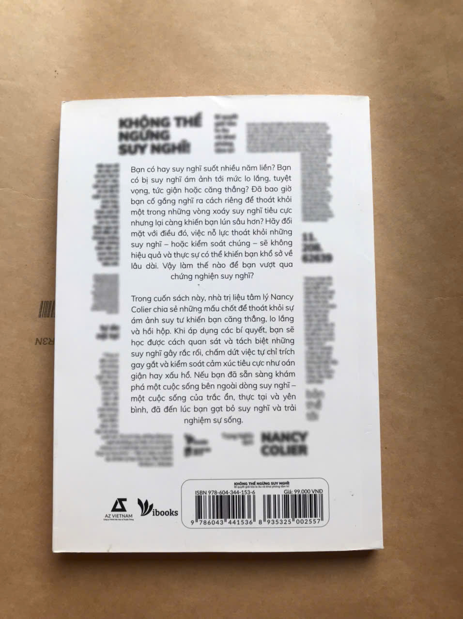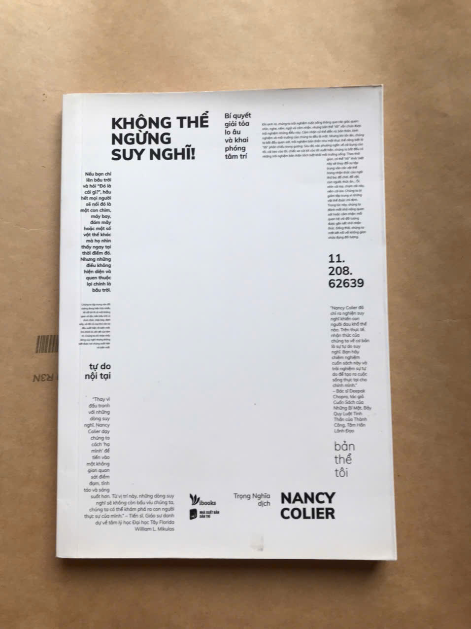 Lý giải kỹ hơn về điều này trong “Không thể ngừng suy nghĩ: Bí quyết giải tỏa lo âu và khai phóng tâm trí”, nhà trị liệu tâm lý Nancy Colier đã lập luận trực tiếp để diễn giải một vấn đề: suy nghĩ của chúng ta về cuộc sống không phải cuộc sống, mà chỉ là ý niệm trừu tượng và ý kiến về cuộc sống mà thôi. Không chỉ dừng lại ở đó, tác giả còn chia sẻ các mấu chốt để giải quyết những vấn đề về suy nghĩ, giúp chúng ta thoát khỏi ám ảnh suy tư gây ra căng thẳng, lo lắng, hồi hộp.