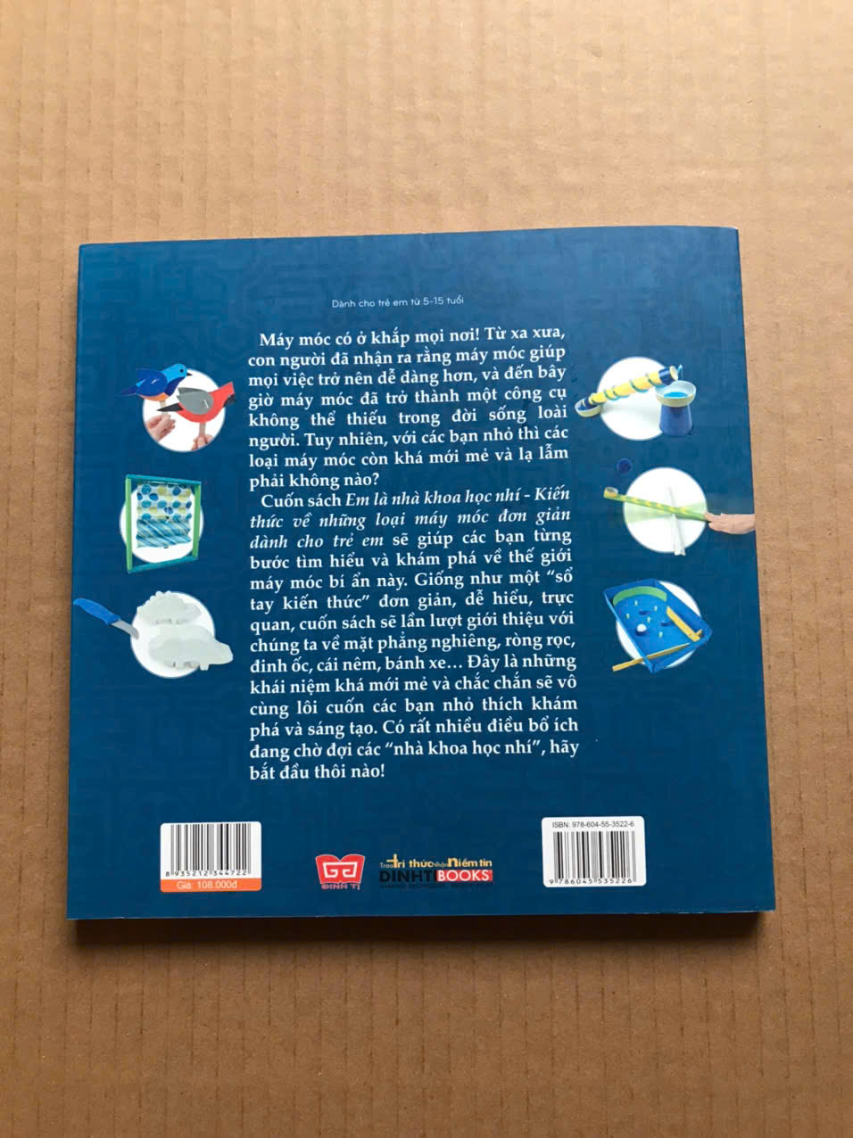 Cuốn sách Em là nhà khoa học nhí - Kiến thức về những loại máy móc đơn giản dành cho trẻ em sẽ giúp các bạn từng bước tìm hiểu và khám phá về thế giới máy móc bí ẩn này. Giống như một “sổ tay kiến thức” đơn giản, dễ hiểu, trực quan, cuốn sách sẽ lần lượt giới thiệu với chúng ta về mặt phẳng nghiêng, ròng rọc, đinh ốc, cái nêm, bánh xe… Đây là những khái niệm khá mới mẻ và chắc chắn sẽ vô cùng lôi cuốn các bạn nhỏ thích khám phá và sáng tạo. Có rất nhiều điều bổ ích đang chờ đợi các “nhà khoa học nhí”, hãy bắt đầu thôi nào!