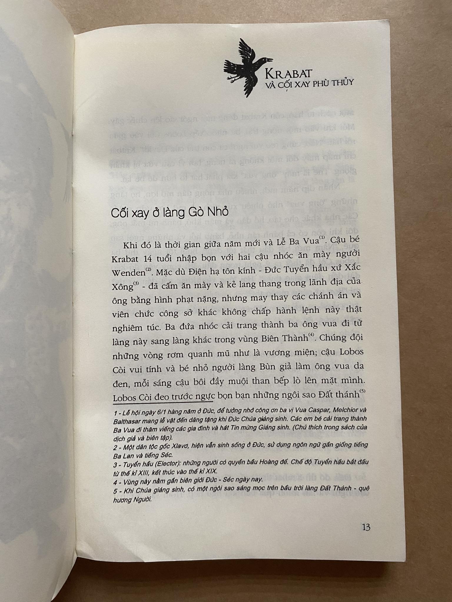 Krabat là một cậu bé dũng cảm du hành đến Cối Xay Phù Thuỷ và học hỏi những Phép Ma Kì Bí. Trong hơi thở những truyền thuyết Đức và mùi đồng nội nồng nàn, tác giả đưa ta vào cuộc phiêu lưu của cậu bé 14 tuổi. Đồng hành với những Phép Ma đáng sợ, Krabat đã học về tình bạn, học cách sát cánh bên người khác và rèn luyện lòng dũng cảm. Từ một cậu bé ngây thơ, Krabat biết cách tự mình phân định thế lực thiện và ác...