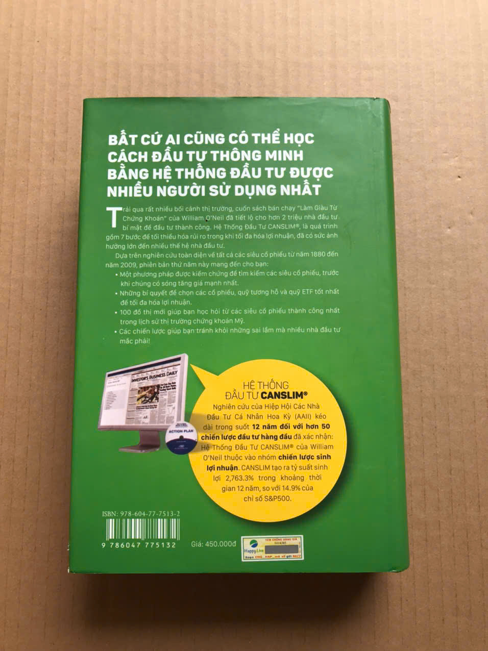 Trải qua mọi loại hình thị trường, cuốn sách bán chạy nhất của William J. O’Neil – How to Make Money in Stocks hay Làm giàu từ chứng khoán, đã đem lại bí kíp thành công cho hơn 2 triệu nhà đầu tư. Hệ thống đầu tư CAN SLIM của O’Neil đã được kiểm chứng trong thực tế về khả năng giảm thiểu rủi ro và tối đa hóa lợi nhuận. Kết quả từ nghiên cứu 12 năm của Hiệp hội các nhà đầu tư cá nhân Mỹ đối với 50 chiến lược đầu tư tốt nhất, cho thấy hệ thống CANSLIM của O’Neil là chiến lược có thành tích hàng đầu. CANSLIM đem lại lợi suất 2.763,3% trong 12 năm so với con số 14,9% của S&P 500. CANSLIM được coi là một trong số những hệ thống đầu tư tốt nhất tại Việt Nam. Sách phù hợp cho những ai mới bắt đầu để học phân tích kỹ thuật và phân tích cơ bản.