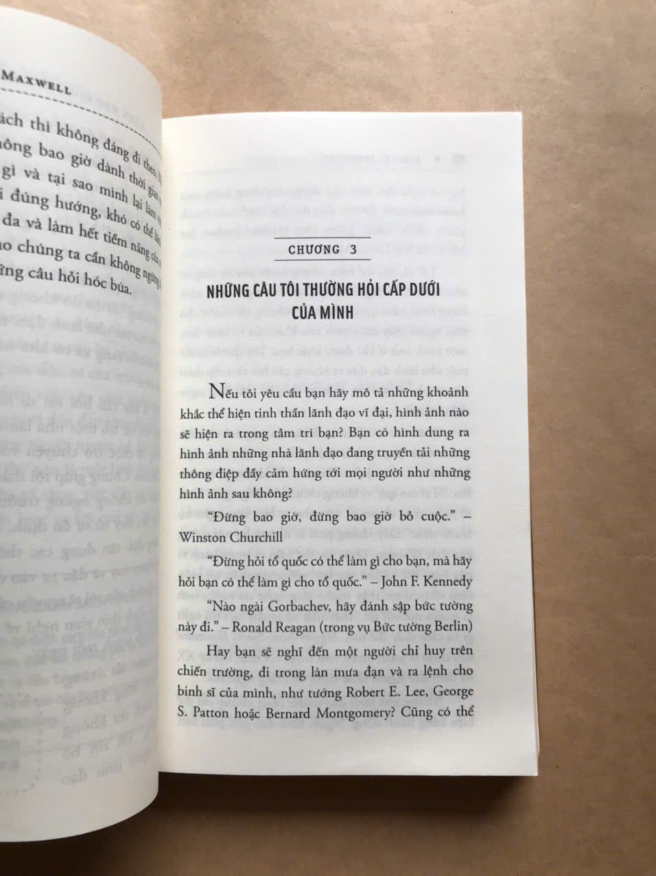 Cuốn sách này đề cập đến việc tự đặt câu hỏi của lãnh đạo và nhân viên. John C. Maxwell đã nhấn mạnh tầm quan trọng của việc đặt câu hỏi và chia sẻ những bí quyết giải quyết vấn đề hằng ngày về lãnh đạo, đồng thời trao chìa khóa giúp giải phóng tiềm năng của nhà lãnh đạo và của toàn đội ngũ thông qua việc đặt ra và trả lời các câu hỏi như: