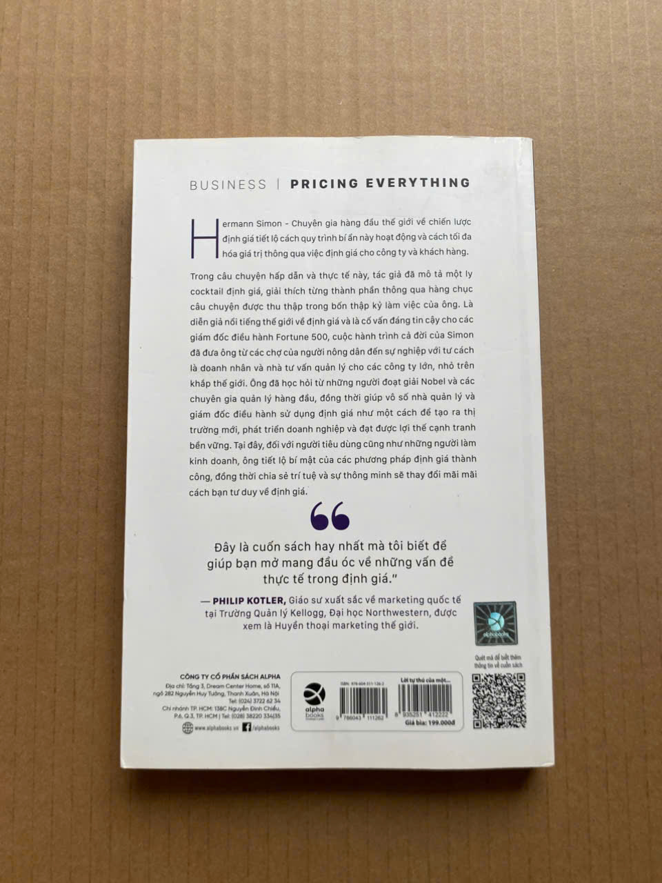 “ Đây là cuốn sách hay nhất mà tôi biết để giúp bạn mở mang đầu óc về những vấn đề thực tế trong định giá” - Philip Kotler, Giáo sư xuất sắc về marketing quốc tế tại trường quản lý Kellogg, Đại học Northwestern, được xem là huyền thoạt marketing Thế giới