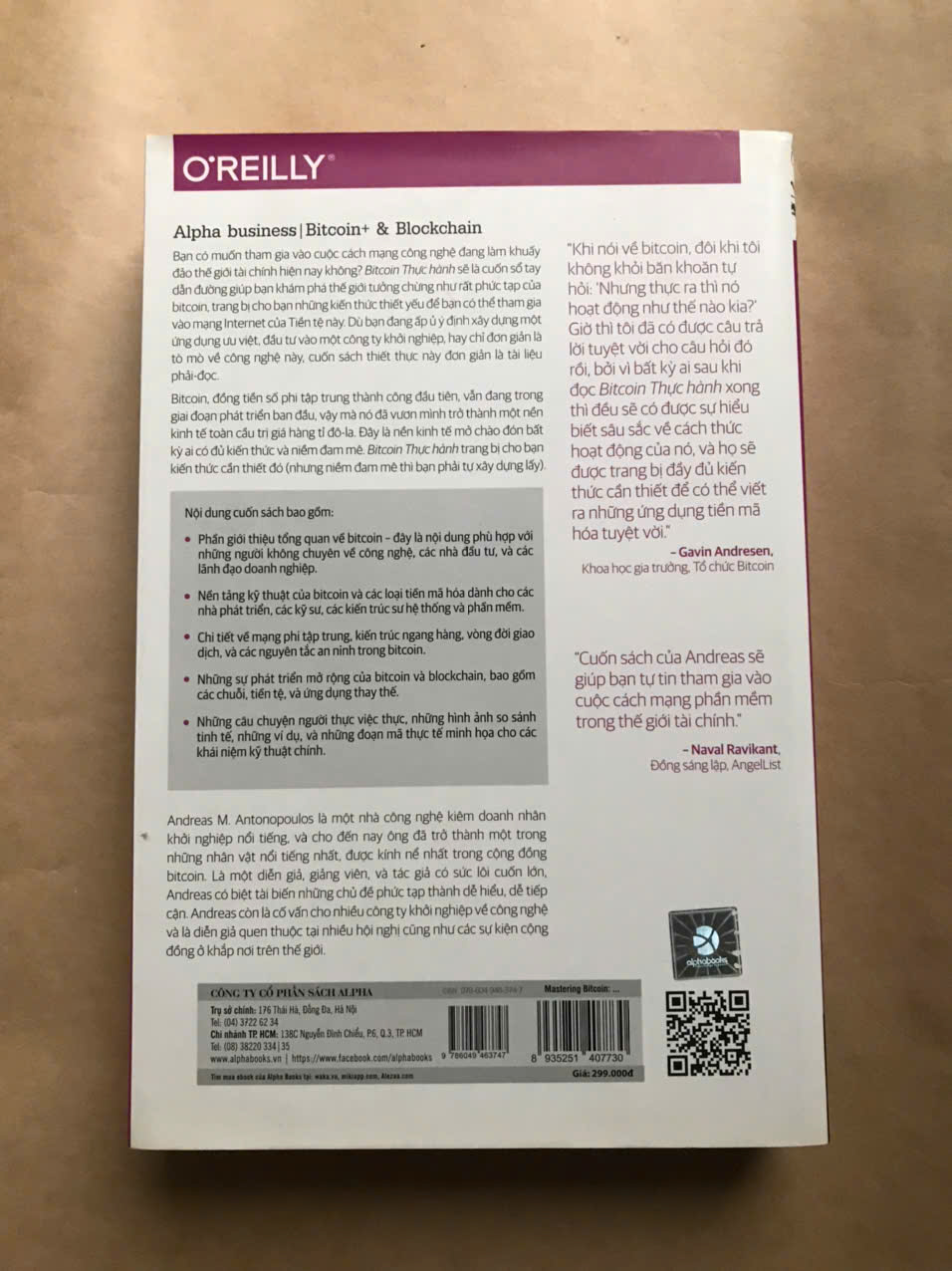 Cuốn sách này, ra đời sau hai năm Andreas “nằm vùng” trong cộng đồng bitcoin, được đông đảo các chuyên gia đánh giá là tài liệu thiết yếu dành cho bất kỳ ai muốn tìm hiểu các kiến thức nền tảng về tiền mã hóa, cách thức vận hành về mặt kỹ thuật của tiền mã hóa, cũng như cách phát triển các phần mềm làm việc với loại tiền này.