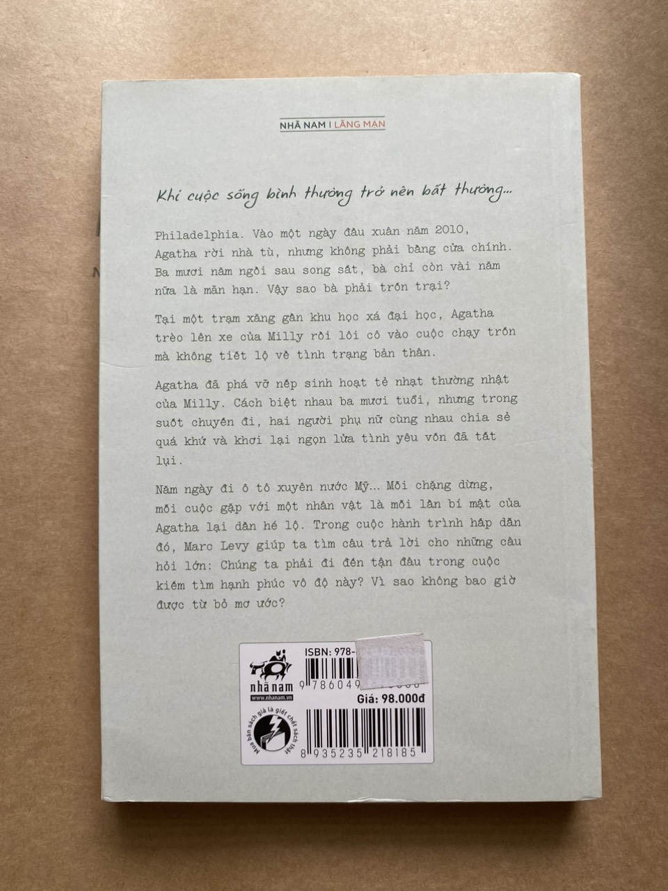 Năm ngày đi oto xuyên nước Mỹ... Mỗi chặng dừng, mỗi cuộc gặp với một nhân vật là mỗi lần bí mật của Agatha lại dần hé lộ. Trong cuộc hành trình hấp dẫn đó, Marc Levy giúp ta tìm câu trả lời cho những câu hỏi lớn: Chúng ta phải đi đến tận đâu trong cuộc tìm kiếm hạnh phúc vô độ này? Vì sao không bao giờ được từ bỏ ước mơ?