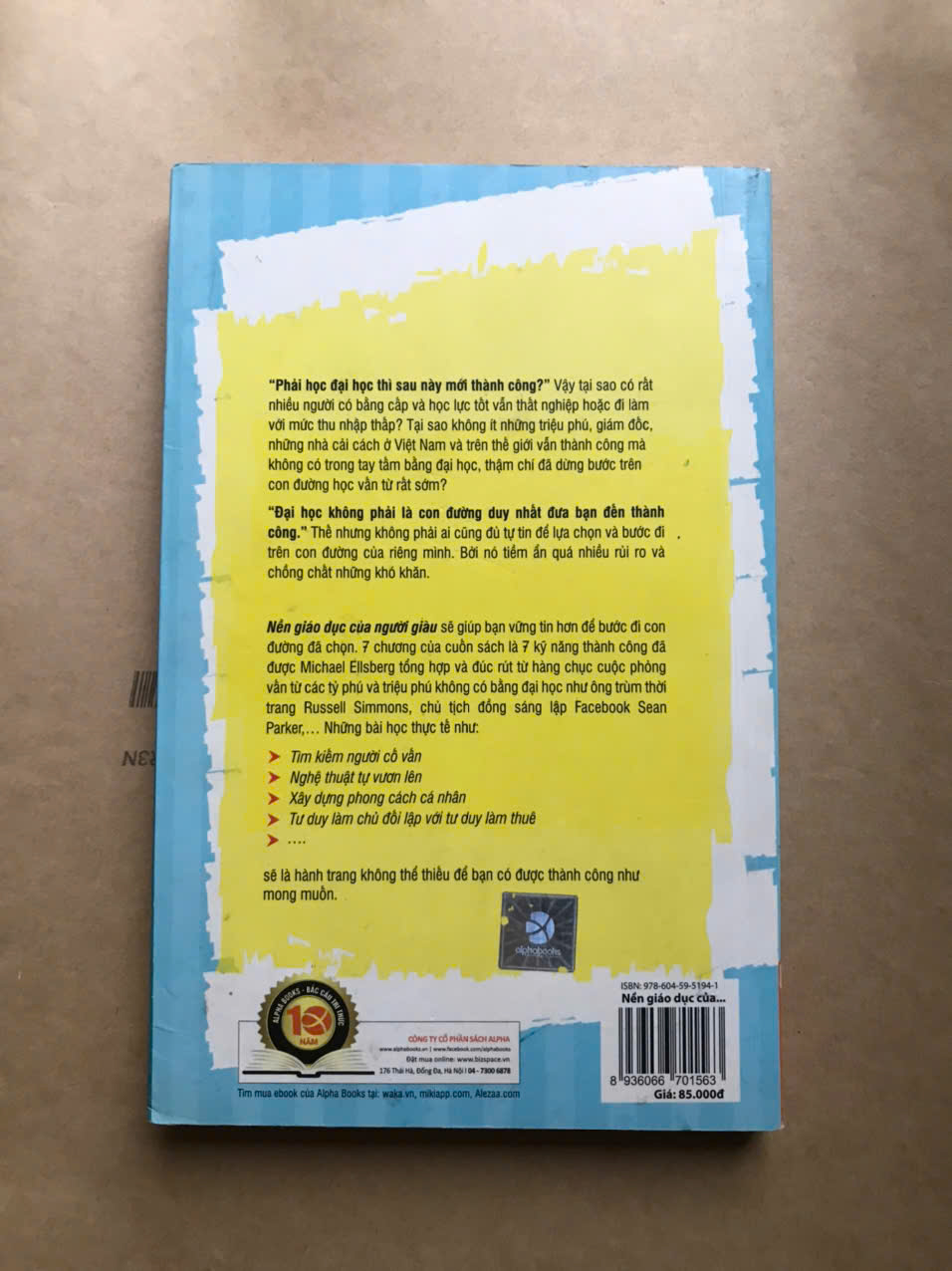 Bạn sẽ thấy được điều đó khi đọc Nền giáo dục của người giàu của Michael Ellsberg. Tác giả đã phỏng vấn các tỉ phú và triệu phú không có bằng đại học, bao gồm ông trùm thời trang Russell Simmons, chủ tịch đồng sáng lập Facebook Sean Parker... Bên cạnh đó, Michael Ellsberg còn đưa ra những chỉ dẫn tuyệt vời để bạn tiến tới thành công bằng những kỹ năng vô cùng đơn giản: Để tìm được người hướng dẫn, cách tạo hứng thú trong công việc, cách xây dựng phong cách cá nhân và nhiều hơn thế nữa.