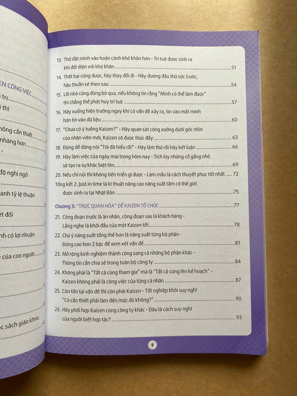 Kaizen của Toyota vốn là hệ thống được sinh ra tại nơi sản xuất nhưng đồng thời Kaizen cũng được xem là hệ thống đào tạo những con người biết suy nghĩ thông qua tạo ra những cơ hội để họ đưa ra trí tuệ. Cuốn sách này sử dụng nhiều ví dụ trong công xưởng sản xuất Toyota, nhưng nếu suy nghĩ ở khía cạnh “phương pháp tư duy” thì cuốn sách này có nhiều kinh nghiệm mà bất kỳ ai, bất kể lĩnh vực nào, thậm chí học sinh tiểu học cũng có thể áp dụng để tạo ra thành quả.