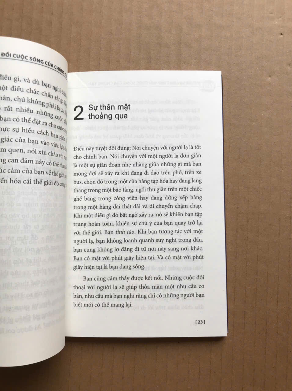 Cuộc sống của chúng ta đang bị thu hẹp theo cấp số nhân. Chúng ta vội vã, khuôn mặt cắm cúi, tâm thức luôn rời xa cơ thể. Chúng ta chỉ nghe thấy những âm thanh mà chúng ta đã thân thuộc và hiếm khi dám làm quen những điều mới, hay những con người mới. Trò chuyện với người lạ giúp chúng ta trải nghiệm việc chia sẻ những cảm xúc và tạo nên những sợi dây liên kết tình cảm chân thật nhất. Và rồi nó sẽ mở ra một thế giới mới cho bạn.