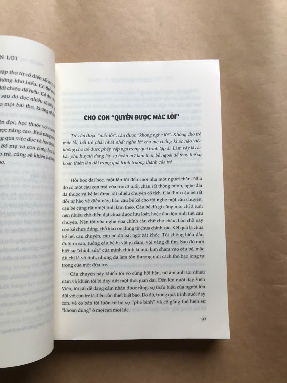 Tác giả cuốn sách là một nhà giáo, một chuyên gia giáo dục có nhiều năm làm công tác giảng dạy, tư vấn và nghiên cứu giáo dục gia đình, nhưng trên hết chị còn là một người mẹ. Vì vậy, trong cuốn sách này, ngoài những quan niệm giáo dục độc đáo đầy trí tuệ, người đọc còn có thể bắt gặp tình yêu con sâu sắc ngập tràn trong từng trang viết của chị. Tác giả quan niệm: Các bậc phụ huynh cần đứng trên góc độ của con trẻ để nhìn nhận vấn đề, đừng bắt ép con trẻ sống theo lối sống mà người lớn áp đặt cho chúng. Bởi vì “trẻ em là một thế giới tồn tại độc lập hoàn mỹ, trong cơ thể bé nhỏ của chúng ẩn chứa sức sống mạnh mẽ vô biên, trong quá trình trưởng thành chúng có một tiềm lực biểu đạt tự mình nhào nặn, tự mình thành hình, giống như bên trong một hạt giống có ẩn chứa rễ, lá, hoa, trong điều kiện thích hợp tự nhiên sẽ phát triển (Trích “Người mẹ tốt hơn là người thầy tốt”). Đây thực sự là một quan niệm giáo dục độc đáo và đầy tiến bộ, rất đáng cho chúng ta nghiên cứu và học hỏi.
