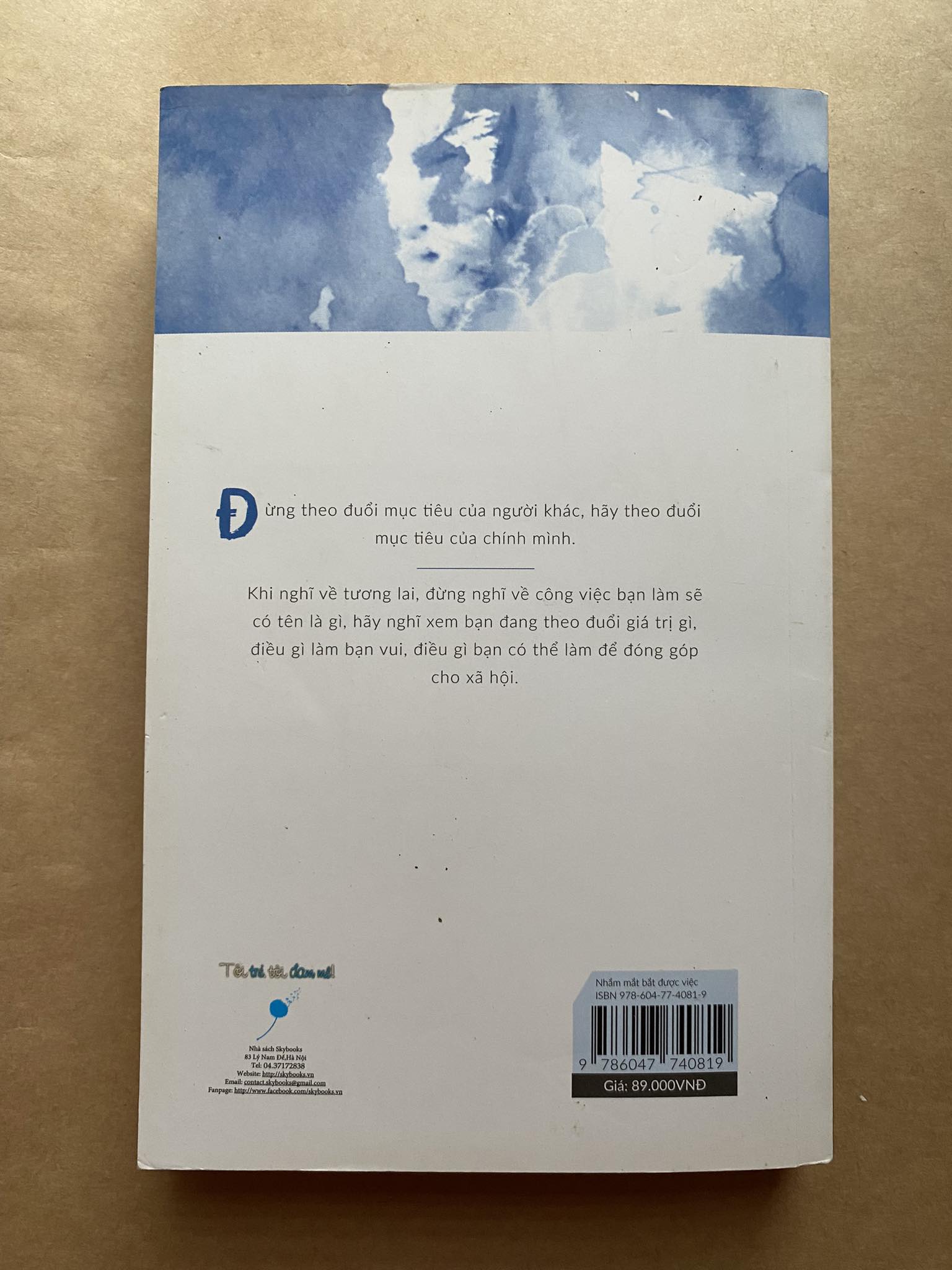 “Khi nghĩ về tương lai, đừng nghĩ về công việc bạn làm sẽ có tên là gì, hãy nghĩ xem bạn đang theo đuổi giá trị gì, điều gì làm bạn vui, điều gì khiến bạn biết rằng mình được cống hiến.” (trích “Cuốn sách giúp bạn Nhắm mắt bắt được việc”)