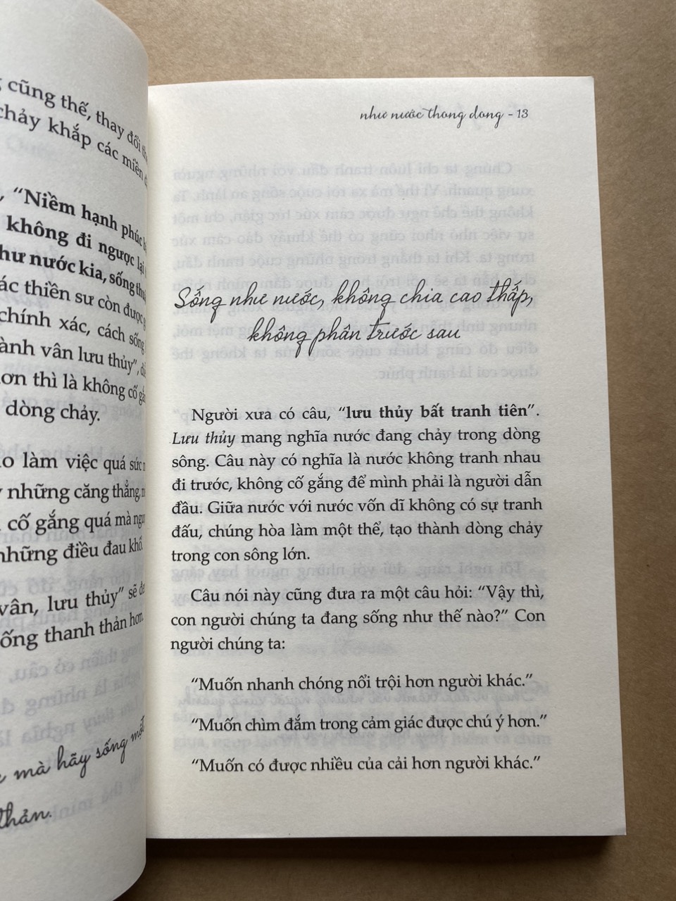 - Tranh giành thiệt hơn chỉ là cái mẽ bề ngoài. Hãy như dòng nước kia, không phân cao thấp, không chia trước sau, từ từ mà chảy, tĩnh tại mà trôi.