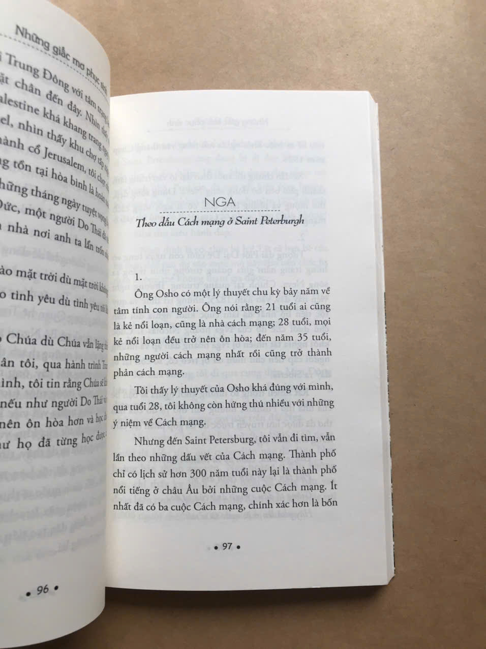 Nếu thế, những suy ngẫm trong cuốn sách này đều là những giấc mơ, và những chuyến phiêu lưu tới biết bao miền đất lạ đối với người viết cũng là những giấc mơ cổ tích. Tận mắt xem Kinh Cựu Ước viết trên những tấm da dê Biển Chết, nằm ngủ trên khách sạn băng ở ngoài vòng cực, trực tiếp sờ tay vào cây thập tự giá đã treo Chúa Jesus giữa Jerusalem, ngồi thiền định dưới cây bồ đề nơi Đức Phật thành đạo ở Bodh Gaya, thảnh thơi uống cà phê xem bóng đá giữa biển chiều Rio de Janerio... Những chuyến đi và kỉ niệm ấy đều có thật nhưng giờ đây chỉ còn đọng lại trong tâm trí người viết như "những giấc mơ".