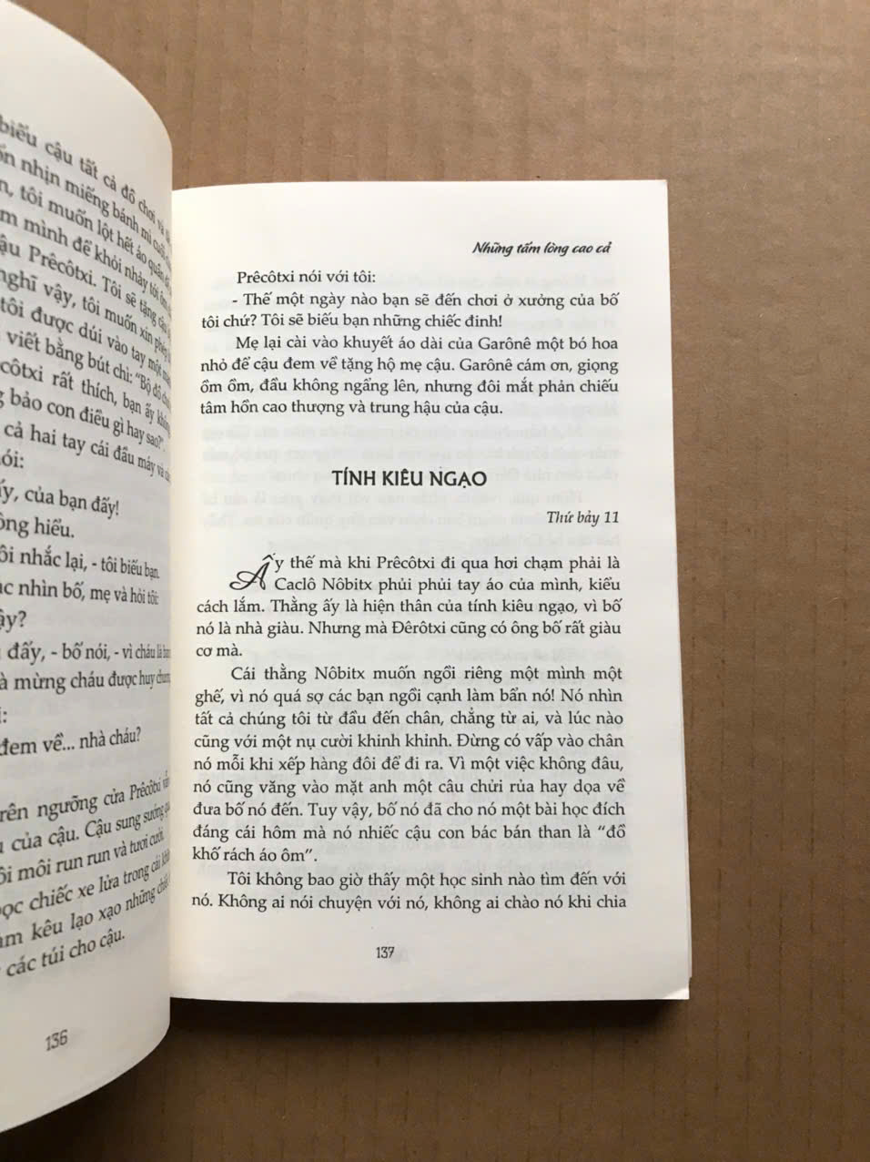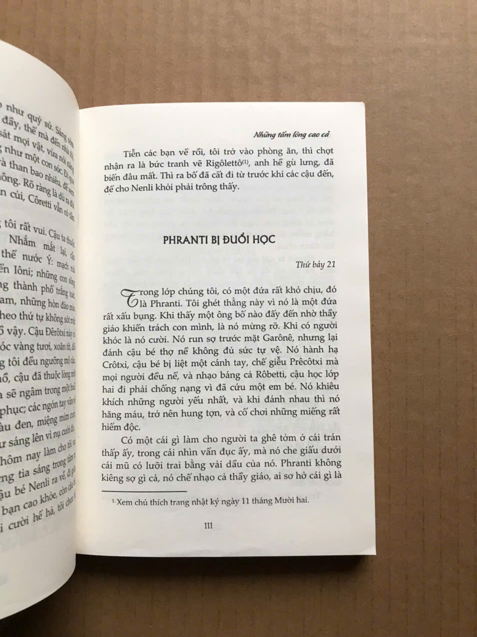 Một cậu bé người Ý, tên là Enricô Bottini, hằng ngày ghi lại những việc lớn nhỏ diễn ra trong đời học sinh của cậu, những cảm tưởng và suy nghĩ của cậu thành một cuốn nhật ký. Nhân vật trong nhật ký là các cô giáo, thầy giáo, các bạn học, là bố mẹ...; mỗi người một vẻ, có một đặc điêm nhẩ định về mặt thể chất hay tinh thần, nhưng đều toát lên vẻ đẹp tâm hồn trong họ. Mỗi câu chuyện là một bài học giáo dục, không chỉ dành riêng cho con trẻ mà còn cho tất cả chúng ta.
