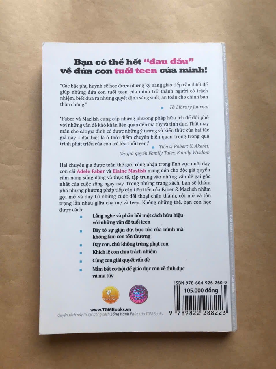 Trong những trang sách, bạn sẽ khám phá những phương pháp tiếp cận tiên tiến của Faber & Mazlish nhằm gợi mở và duy trì những cuộc đối thoại chân thành, cởi mở và tôn trọng lẫn nhau giữa cha mẹ và teen.