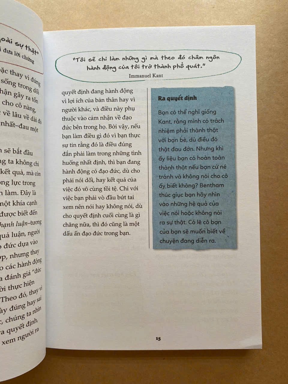 Không có phương án giải quyết duy nhất nào cho một vấn đề, các triết gia khác nhau sẽ đưa ra lời khuyên khác nhau, có thể còn mâu thuẫn gay gắt. Nhưng chính điều đó phản ánh bản chất thú vị của triết học, đồng thời cho bạn nhiều lựa chọn để suy ngẫm, và học được cách sống một cuộc sống đích thực.