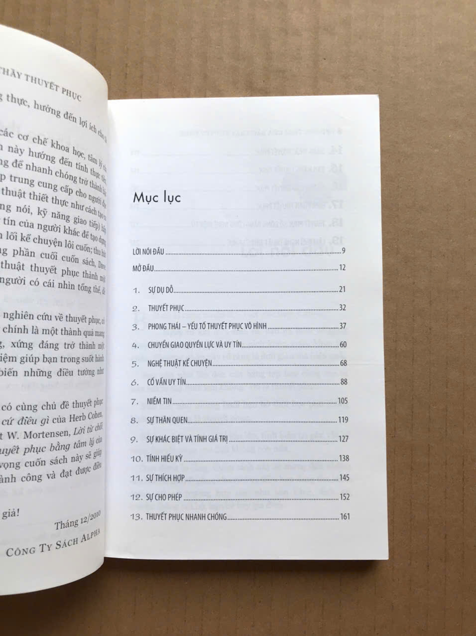 Sáu nguyên lý thuyết phục. Các bước trở thành chuyên gia thuyết phục trong chưa đầy 30 ngày. Các cách thuyết phục nhanh chóng mà bạn có thể làm chủ và sử dụng hàng ngày. Thuyết phục đích thực dựa trên lẽ phải, lòng chân thành, khả năng khơi gợi tính hiếu kỳ, kể chuyện hấp dẫn và giỏi nắm bắt mong muốn của người khác. Sự thuyết phục tuyệt vời là cả một nghệ thuật công phu - bản hòa âm tinh tế giữa bạn và người bạn muốn thuyết phục.