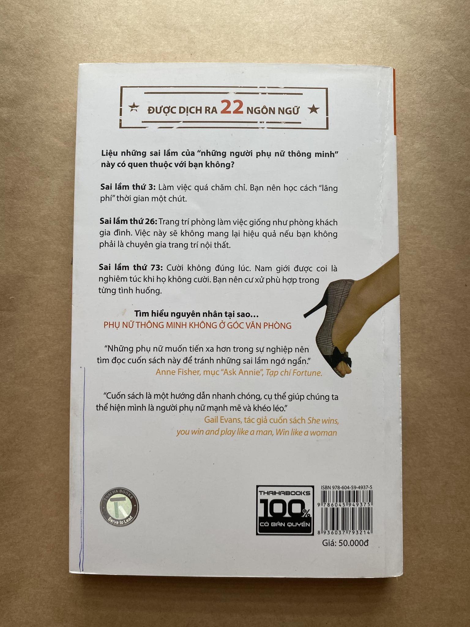 Chỉ cần duy nhất 1 điều là làm việc chăm chỉ thì sẽ thành công…đó là một trong số 101 sai lầm tiêu biểu nữ giới thường mắc phải mà cuốn sách” Phụ nữ thông minh không ở góc văn phòng” đã nêu ra. Để khắc phục những sai lầm đó cuốn sách cũng đưa ra những gợi ý hết sức hữu ích.