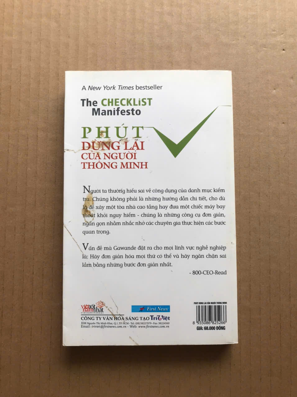 Giờ đây, tác giả nổi tiếng, bác sĩ phẫu thuật Atul Gawande đưa ra một lý lẽ hết sức thuyết phục rằng chúng ta có thể làm tốt hơn và tìm ra cách giải quyết vấn đề bằng giải pháp bình thường nhất: một danh mục kiểm tra tầm thường. Ông giải thích làm thế nào các danh mục kiểm tra lại biến những điều khó khăn nhất thành có thể - từ điều khiển máy bay đến xây dựng các tòa cao ốc phức tạp. Và với kinh nghiệm của chính mình, ông cho mọi người thấy nhờ vào đâu mà việc áp dụng ý tưởng này vào lĩnh vực phẫu thuật vốn vô cùng phức tạp lại tạo ra được một danh mục kiểm tra mà việc thực hiện chỉ mất 90 giây, nhưng lại giúp giảm hơn một phần ba tỷ lệ tử vong và biến chứng tại tám bệnh viện trên thế giới - mà hầu như không cần thêm khoản chi phí nào và có thể áp dụng cho hầu hết các loại hình phẫu thuật.